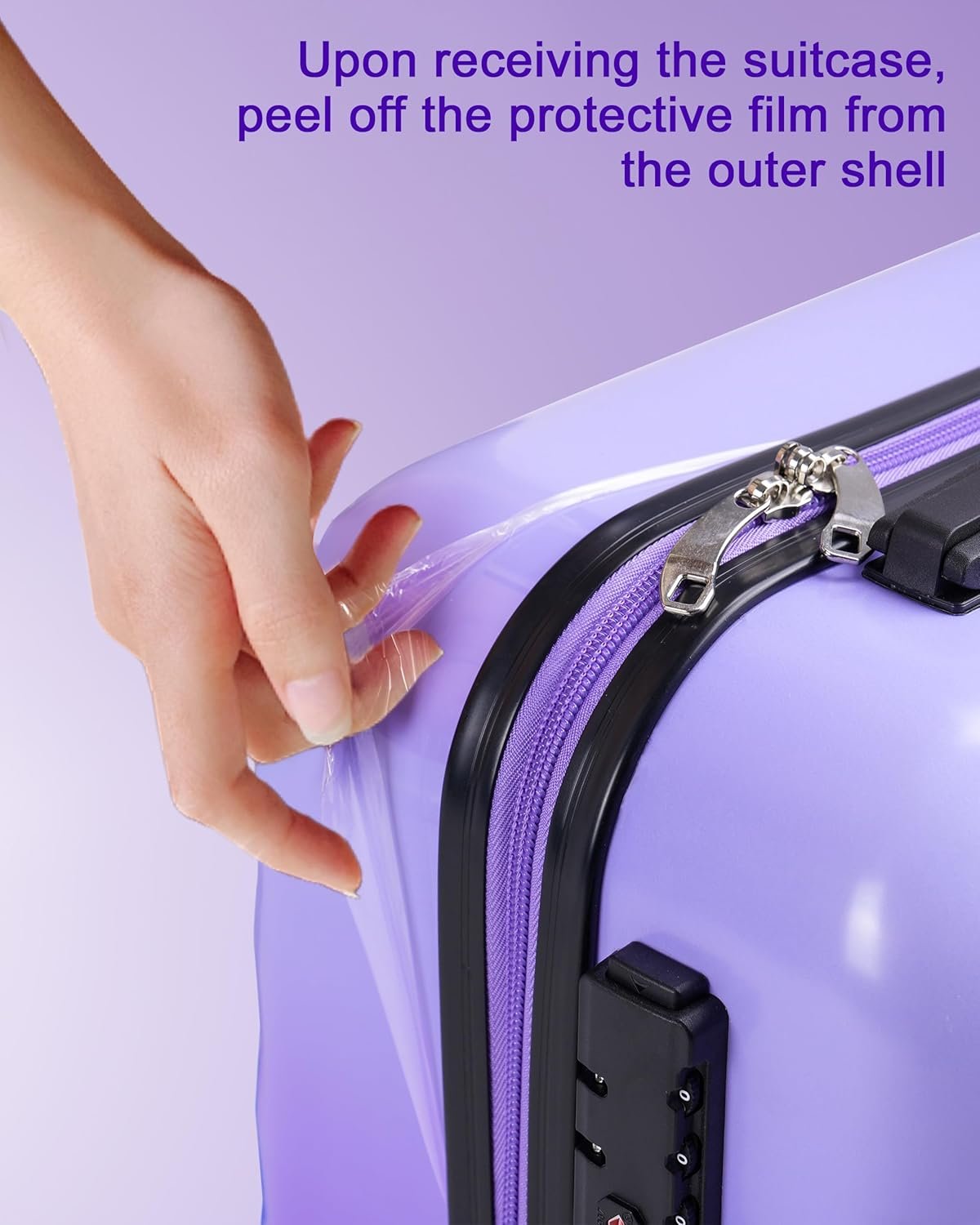 Extra Protection:The suitcase hard shell has a protective plastic film that keeps the suitcase in good condition after use