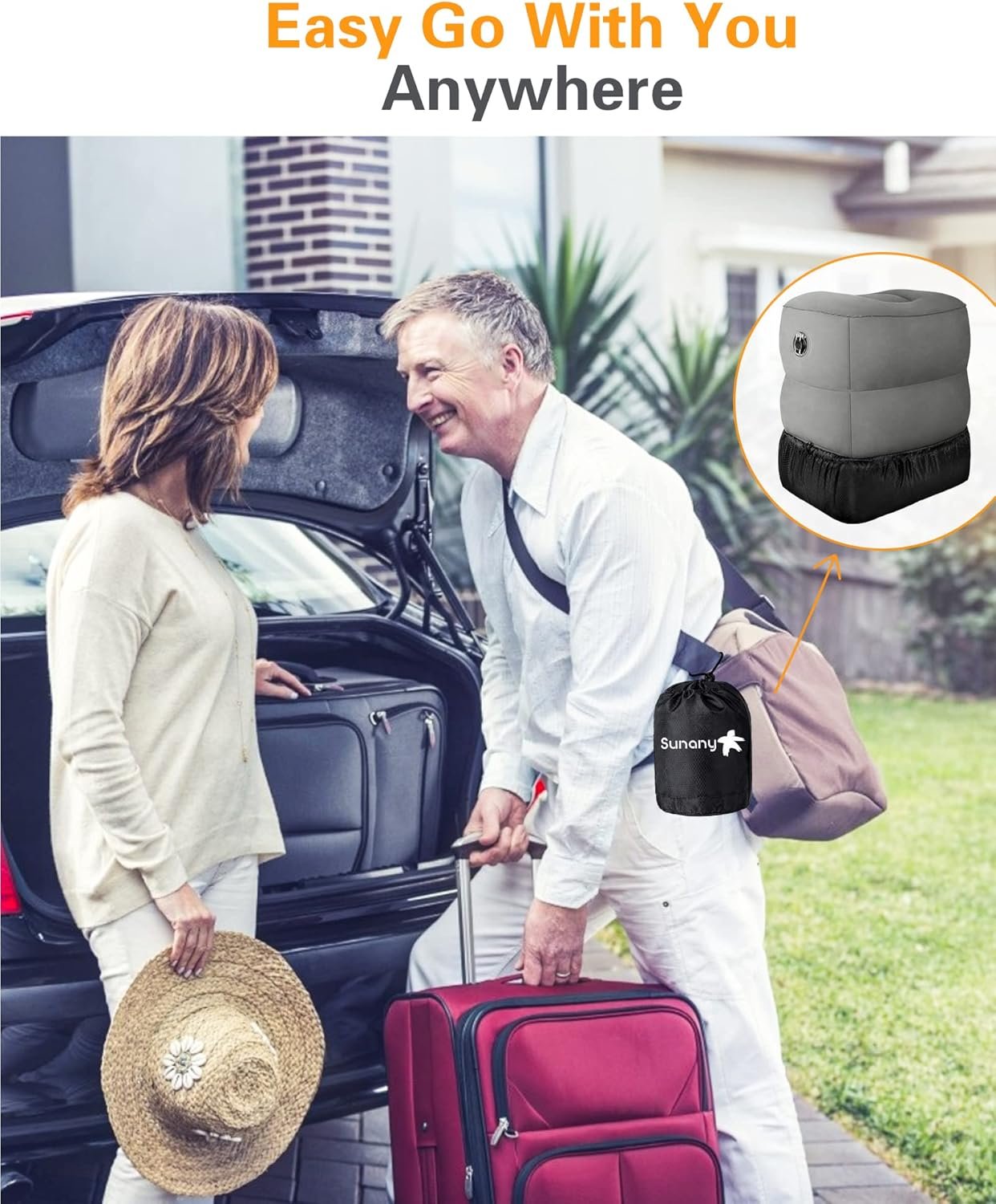 Sunany Inflatable Foot Rest Pillow for Airplane – Kids/Adults – Adjustable Height Cushions, to Sleep While Traveling,Suitable for Office,Home and Any Travel(Dark Grey,2 Pack)