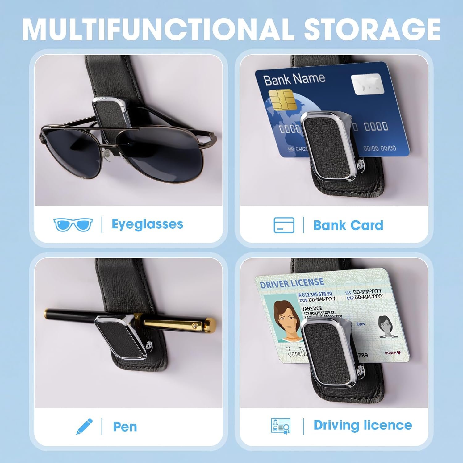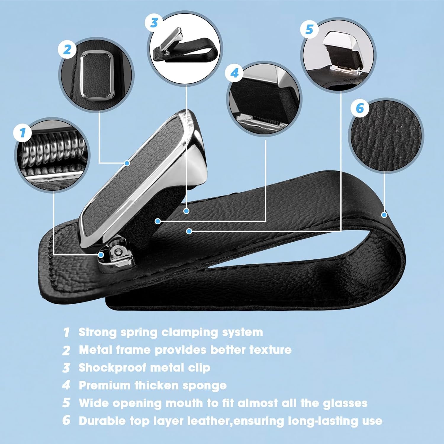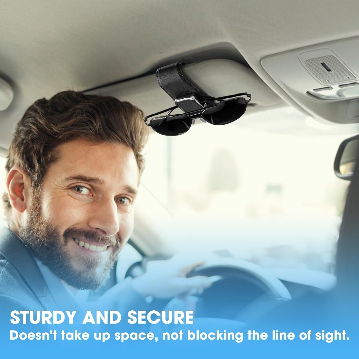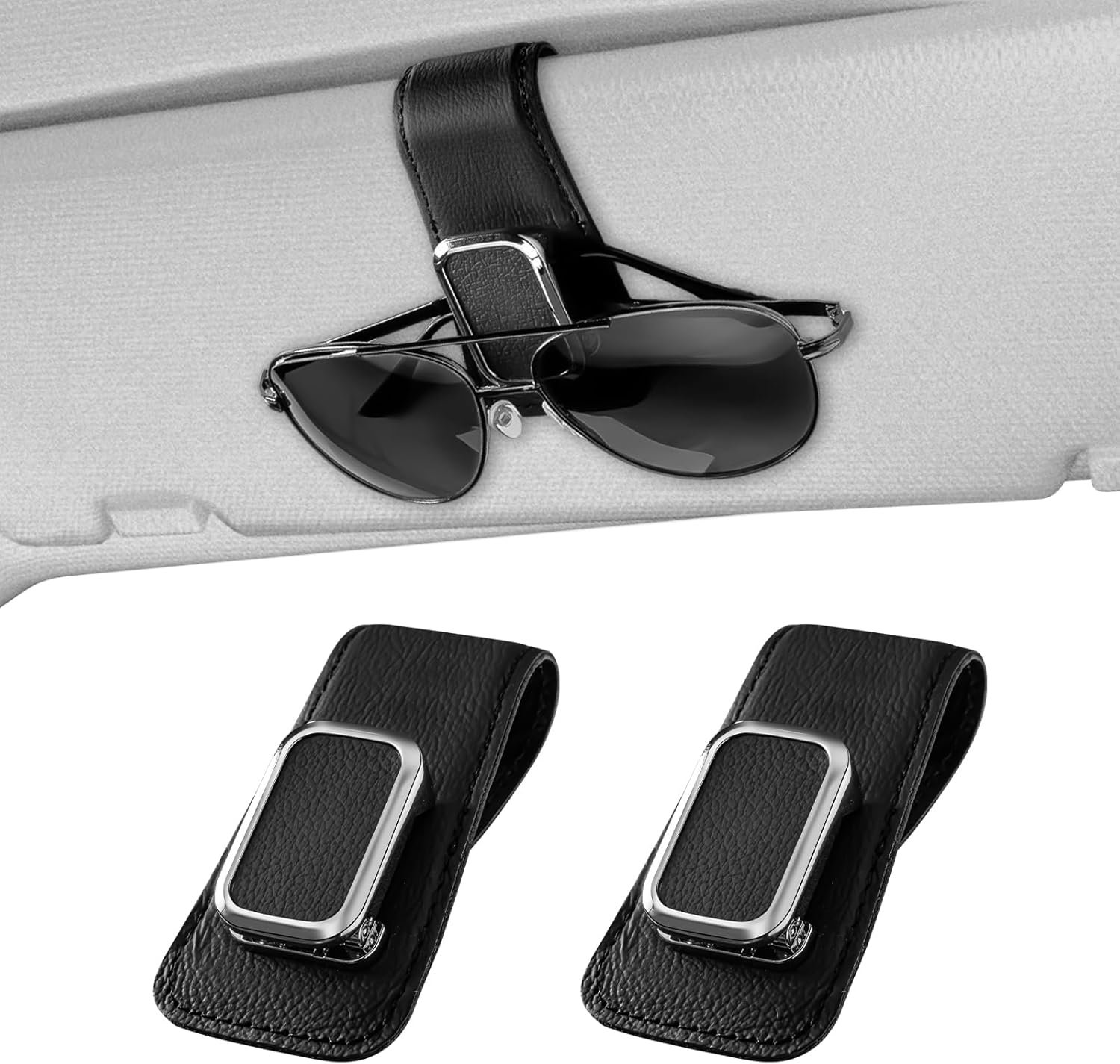 Stable and Sturdy: Our car glasses holder is made of metal and fully wrapped with top leather. It keeps the sunglasses firmly in place, no more worry about the clip being unstable and eyeglasses falling off while driving.