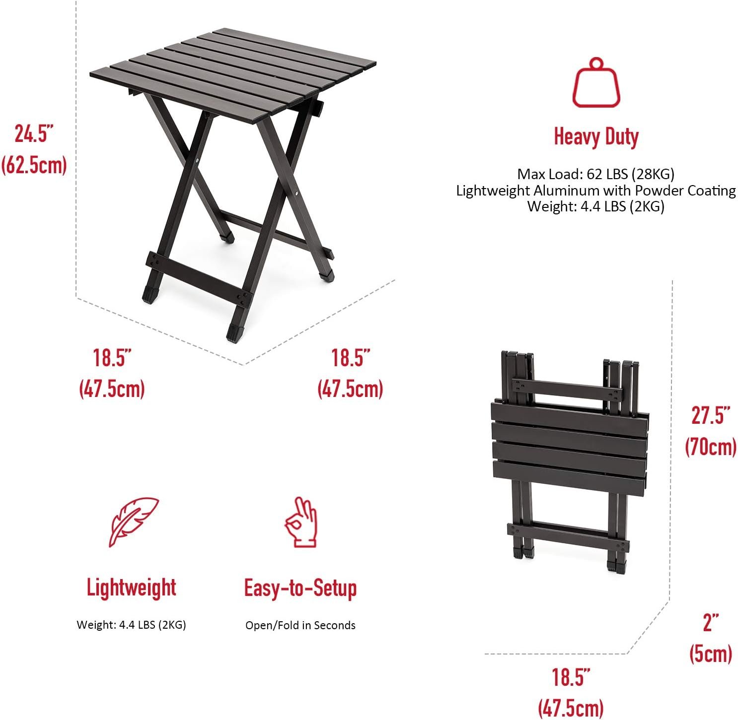 Compact Folding Camping Side Table: Lightweight Aluminum Portable Picnic Table, 18.5×18.5×24.5 Inch for Cooking, Beach, Hiking, Travel, Fishing, BBQ, Indoor Outdoor Small Foldable Camp Tables