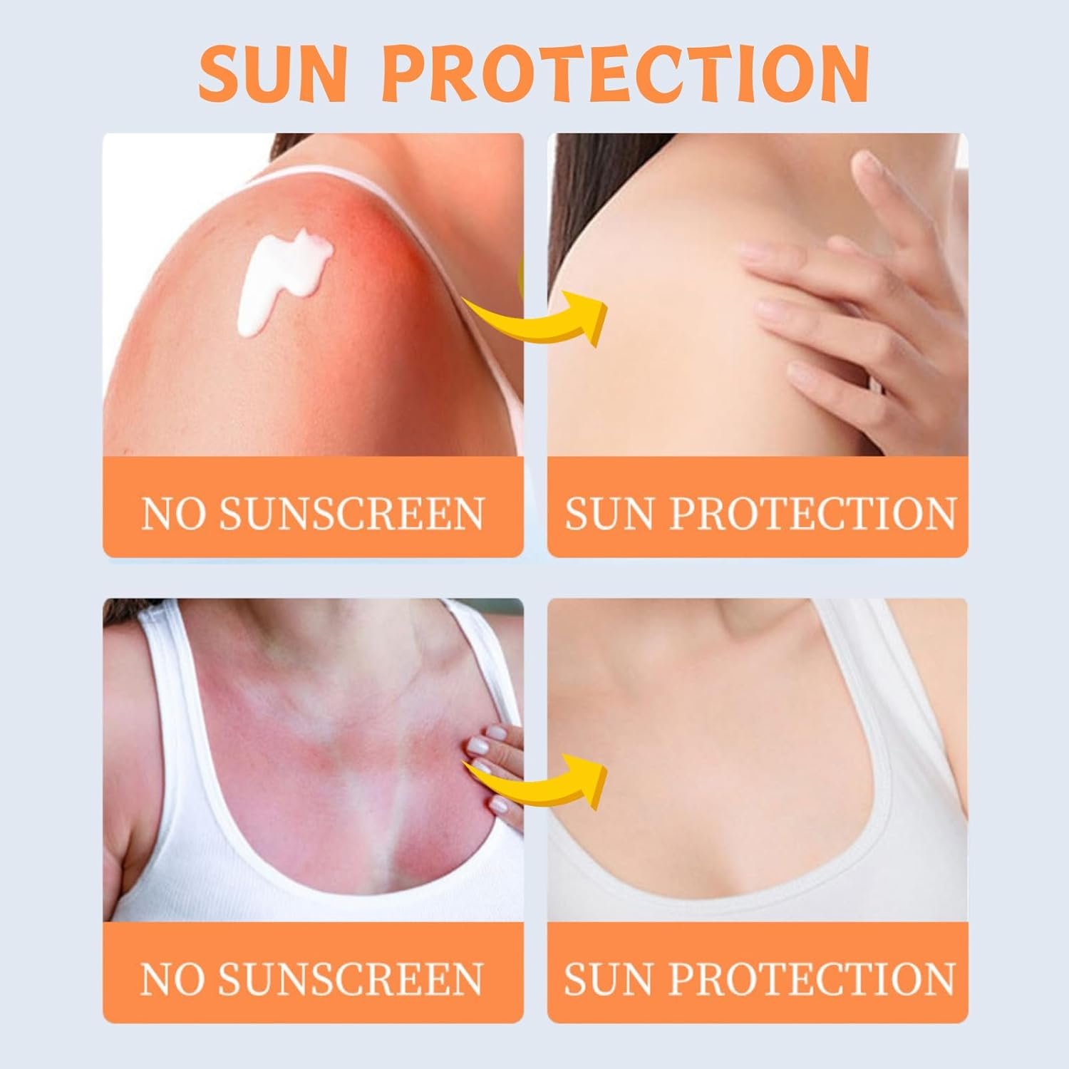 【Lightweight Texture & No White cast】The sun screen protector for face and body features a lightweight texture that leaves no white cast on the skin, making it usable for all skin colors. The sunblock face features a semi-matte finish with a natural glow, preventing the skin from looking greasy and controlling excess sebum