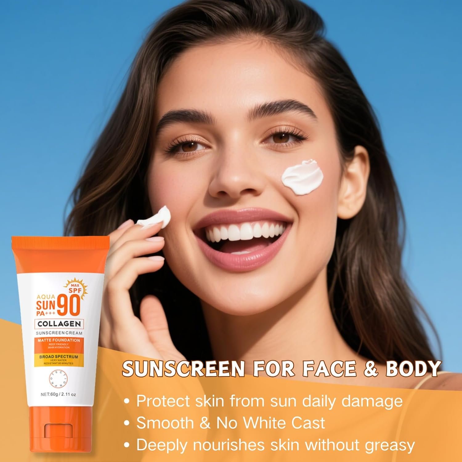【Long-lasting & Water Resistant】Our spf moisturizer face has a good waterproof and sweat-proof effect. Even if you sweat after exercise or play in the swimming pool, you will not fall off, so that you will always maintain a charming charm. At the same time, the design of spf 90 sunscreen body is easy to carry, suitable for outdoor activities