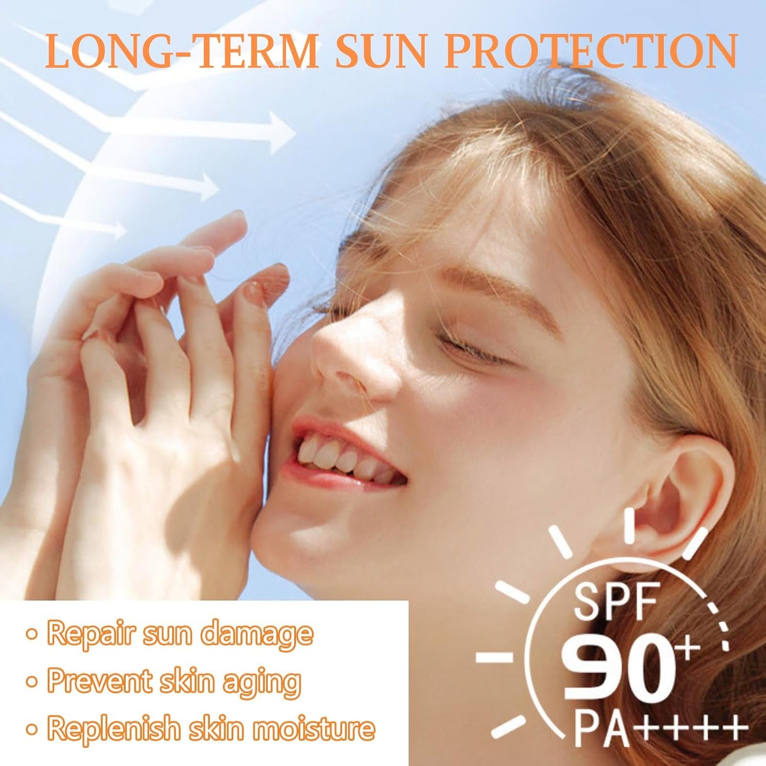 【Moisturizing Sunblock SPF 90】Our SPF90 face sunscreen korean is hydrated, lightweight, and non greasy, quickly absorbed by the skin, forming a soft protective film on the surface of the skin. This face moisturizer with spf 90 can deeply nourish dry skin, strengthen skin barriers, and give you a refreshing feeling