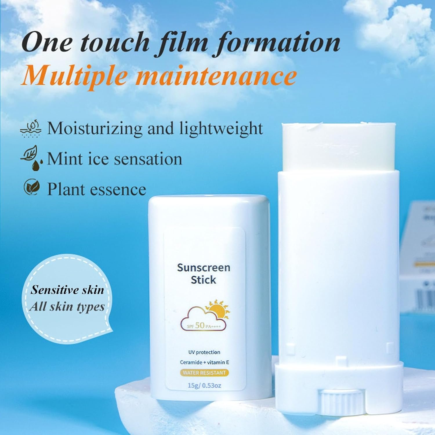 [Not Greasy]:The lightweight and breathable formula of the sunscreen face stick gives a cold touch after application, quickly forming a film on the skin without leaving a greasy or sticky feeling.
