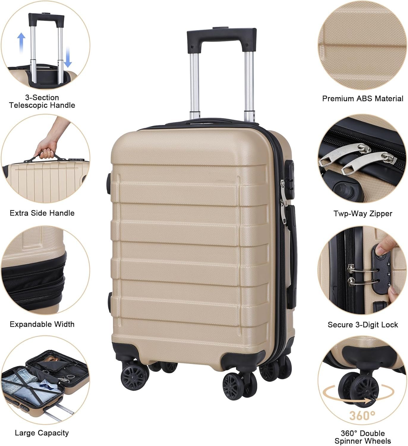 『Expandable & Lockable』Featured expandable design let you can expand the width of the suitcase from 8.8inch to 9.5inch, so you can put more items into the luggage and can close it easier. The 3 digits combination lock let you can lock its zipper pullers to ensure safety.