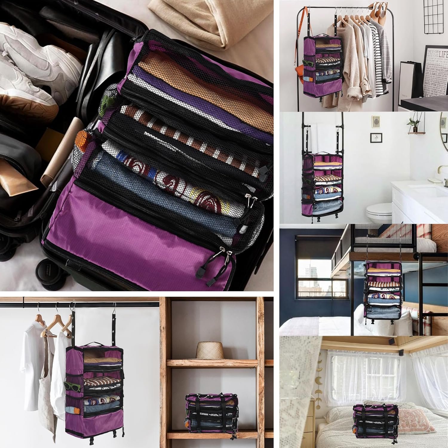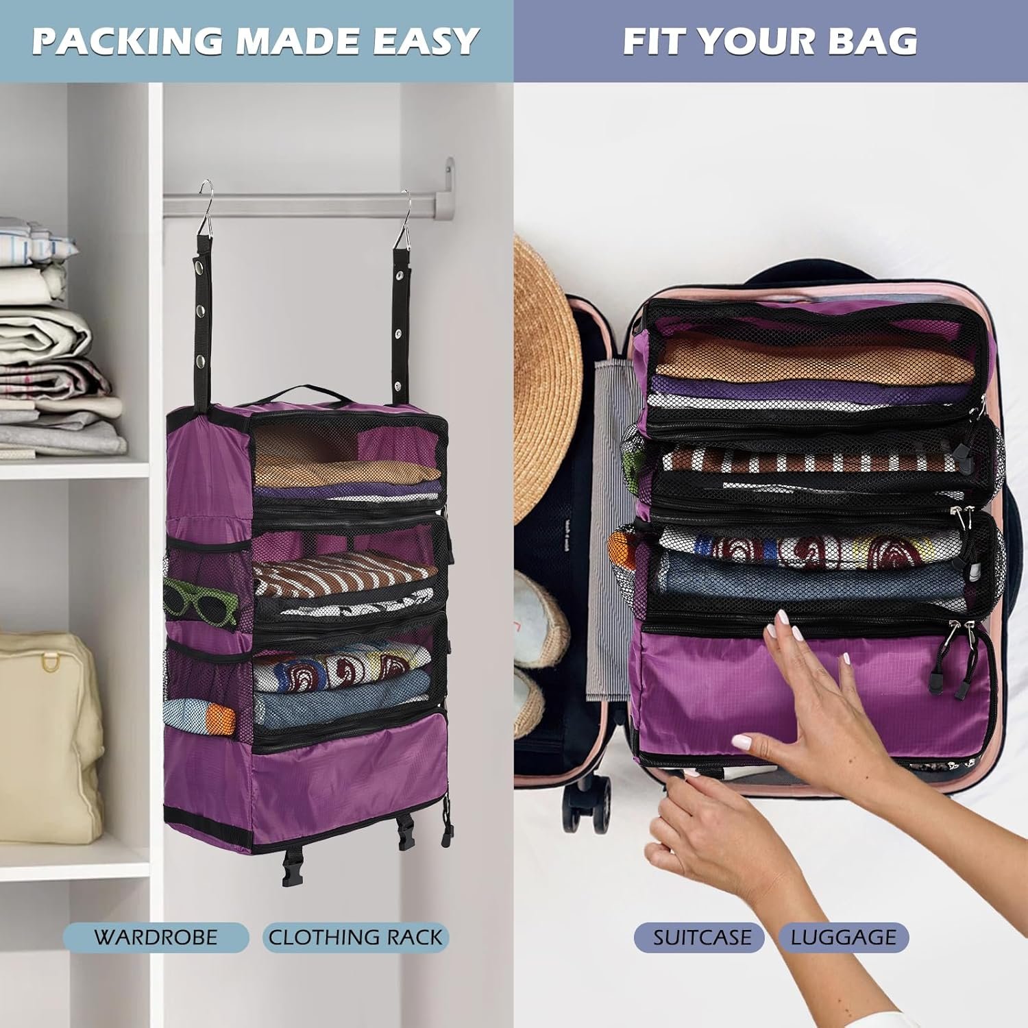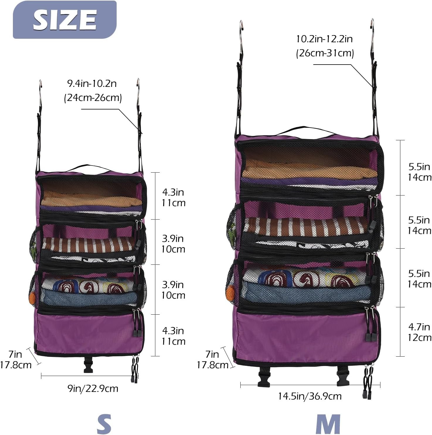 Surblue Travel Hanging Luggage Organizer Portable Suitcase Closet Organizer Multiple Compartments Collapsible Compression Packing Cubes Shelf, Purple, M