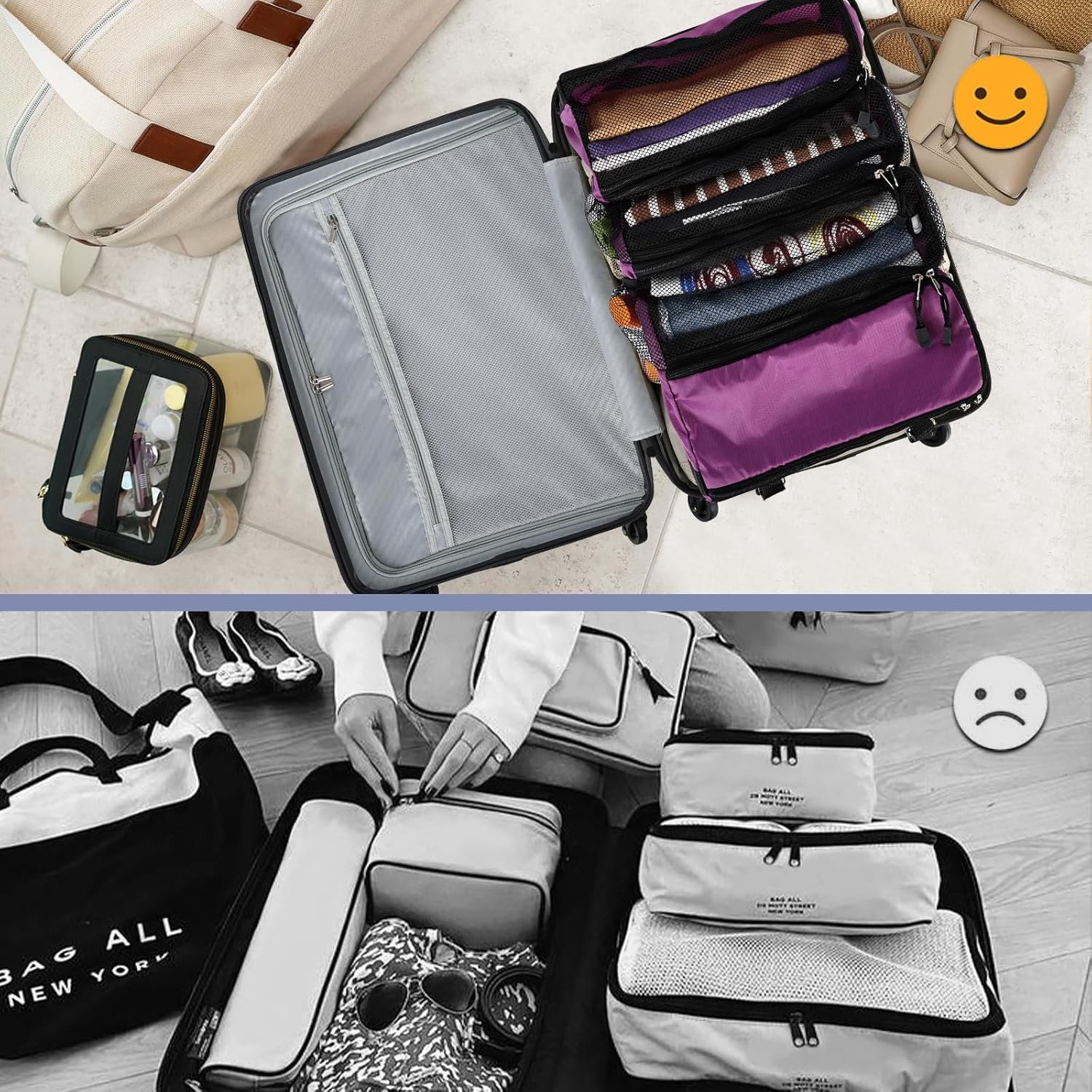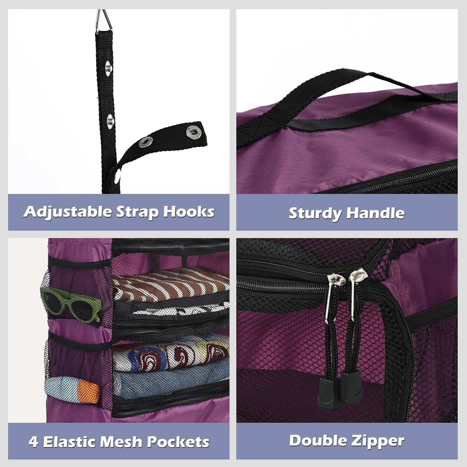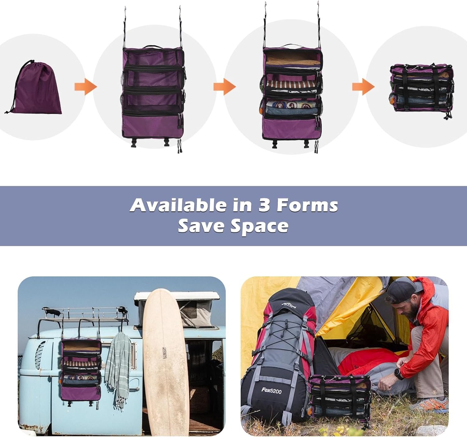 Surblue Travel Hanging Luggage Organizer Portable Suitcase Closet Organizer Multiple Compartments Collapsible Compression Packing Cubes Shelf, Purple, M