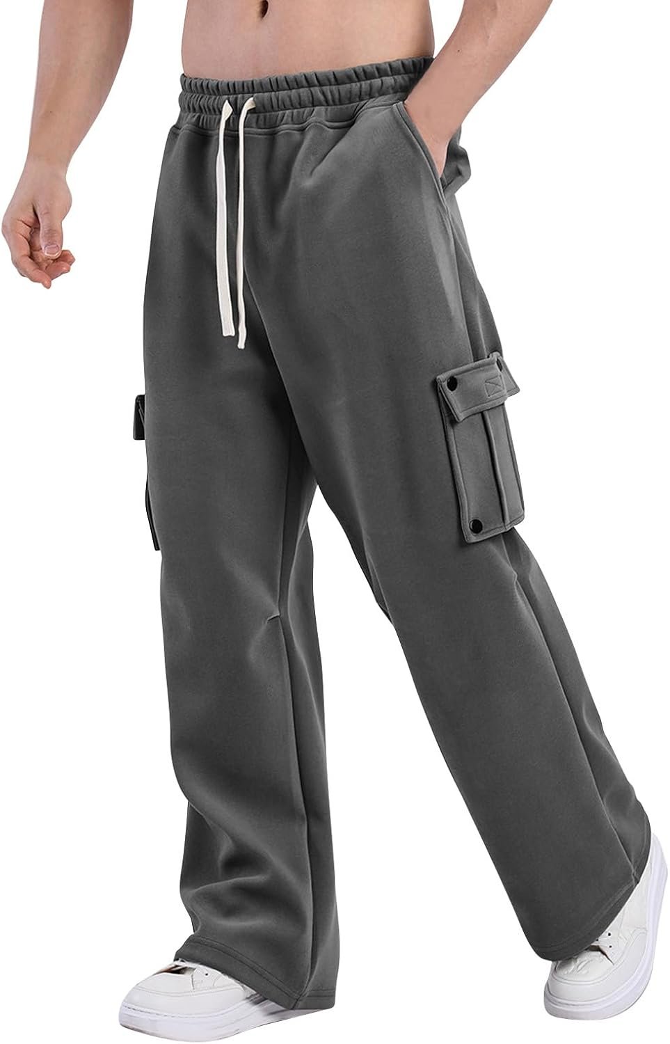 Sweatpants for Men Lightweight Tactical Cargo Pants Drawstring Construction Casual Joggers Workout Hunting