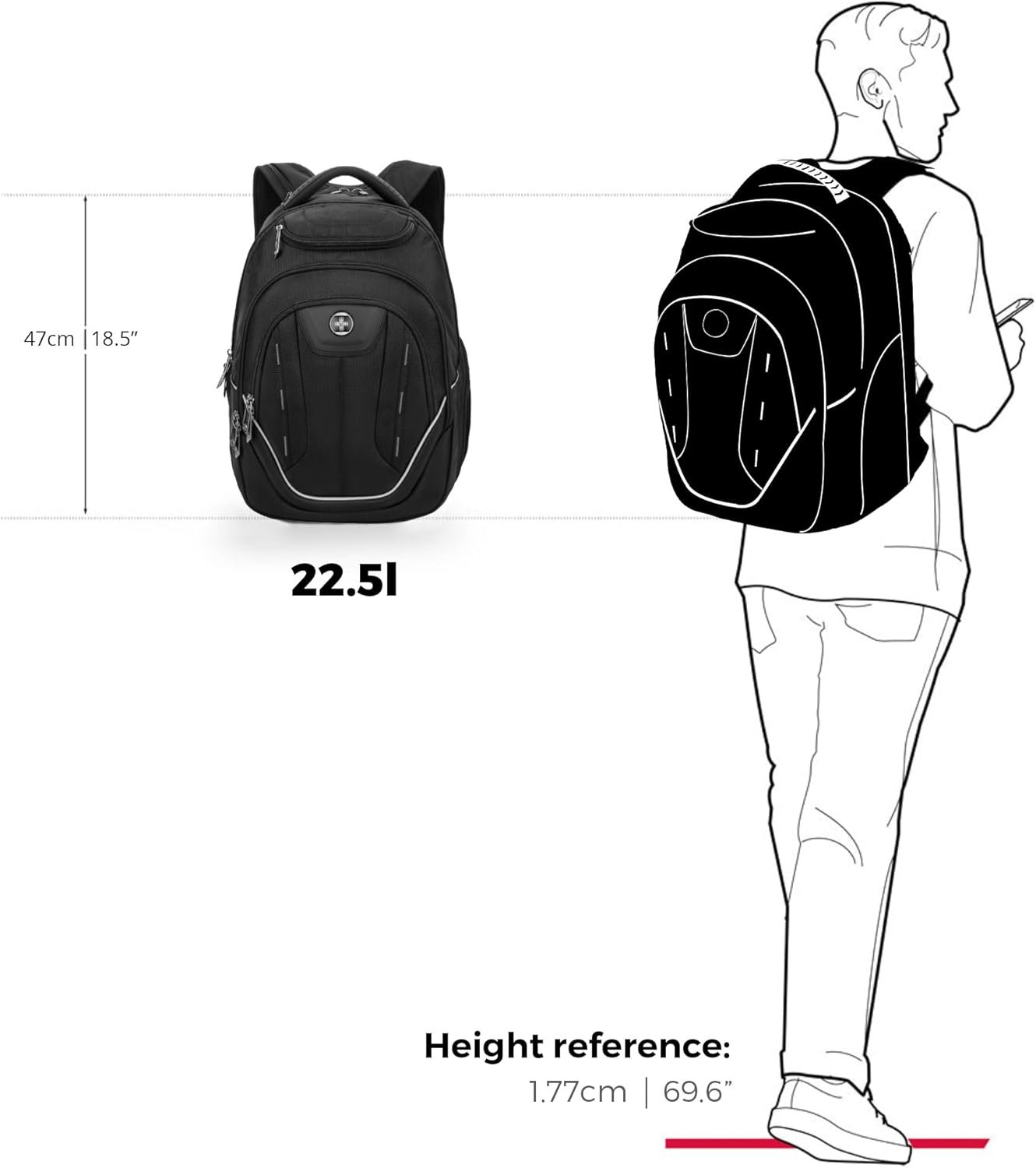 Swissdigital Design laptop backpacks are designed for the new “commuter urban traveller”. Material: Polyester, Polyester fiber. Weight: 3.11 pound. Size: 13″ x 9.50″ x 18.50″/47 x 33 x 24cm. Large capacity can be used as a daily commute and two-three-day jaunty. Supports packing your laptop, tablet, cell phone, books, water bottle and other essentials into the backpack for men.