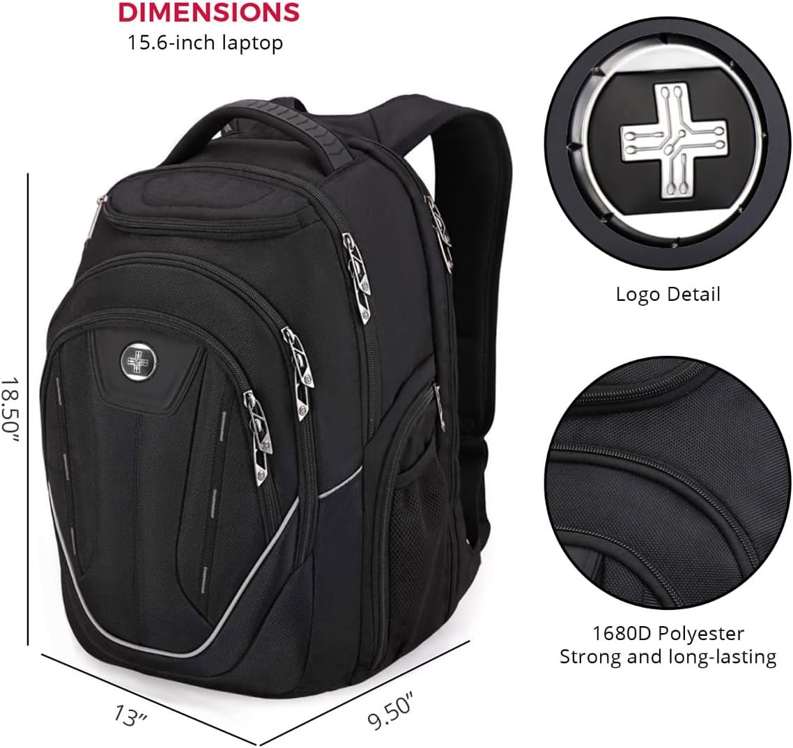 Swissdigital Design Large Travel Backpack For Men, TSA-Friendly Business Laptop Backpack, USB Charging Port,RFID Protection Tech Backpack Fits 15.6Inch Laptop (TERABYTE J16BTF-02) One Nation One World