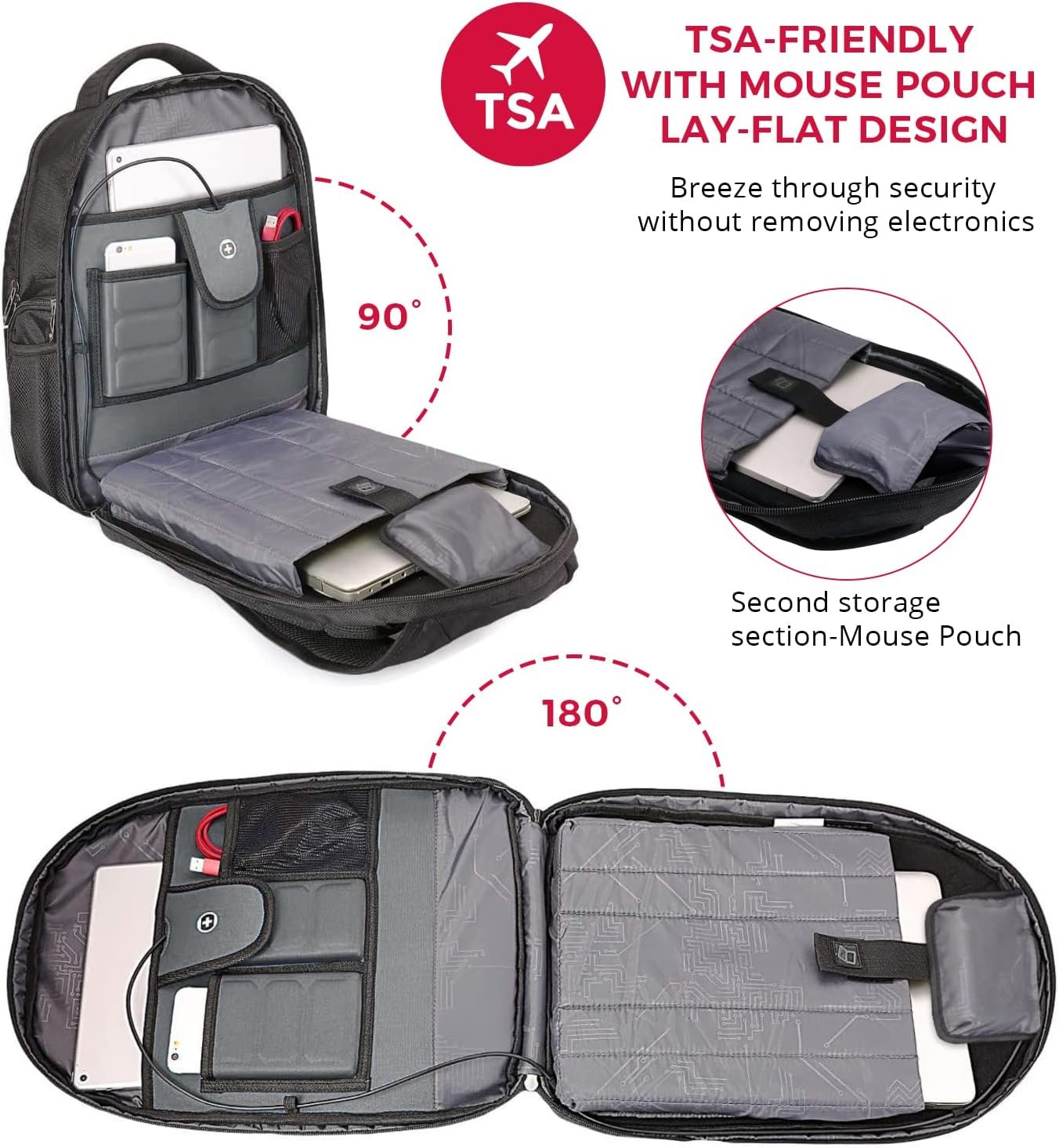 TSA-FRIENDLY & MULTIPURPOSE: At the checkpoint it extends to 90-180 degrees, allowing quick and efficient navigation through airport security. Exclusively designed for AIRPLANE TRAVEL. Serves as an everyday backpack, spacious college backpack for men, professional backpacks for laptops. Occasional international travel, outdoor camping backpack, hiking backpack with a large capacity with USB charging capability.