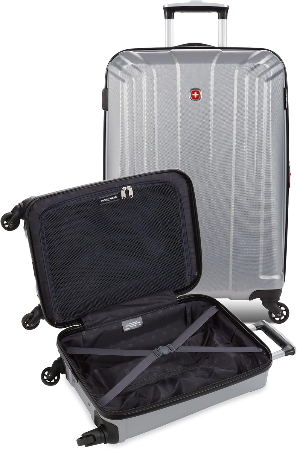 Introducing the lightweight SwissGear 3750 Hardside Spinner Luggage. This 2-Piece Set is made of a durable ABS material, featuring a push-button locking retractable handle and four multi-directional lightweight spinner wheels for easy maneuvering around the airport. Constructed using a fully lined, expandable split-case design for naturally superior packing organization, other features include a top and side molded lift handle, clothing tie-down straps, and a zippered divider panel to help keep everything in place.