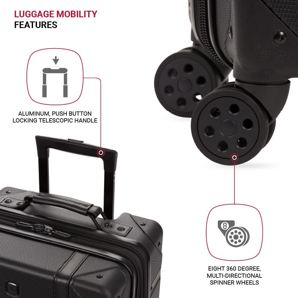 360-DEGREE SPINNER MANEUVERABILITY: Constructed with 8 premium spinner wheels and a locking retractable handle, take advantage of its easy pushing and pulling maneuverability to seamlessly get through a crowded airport or down narrow airplane isles.