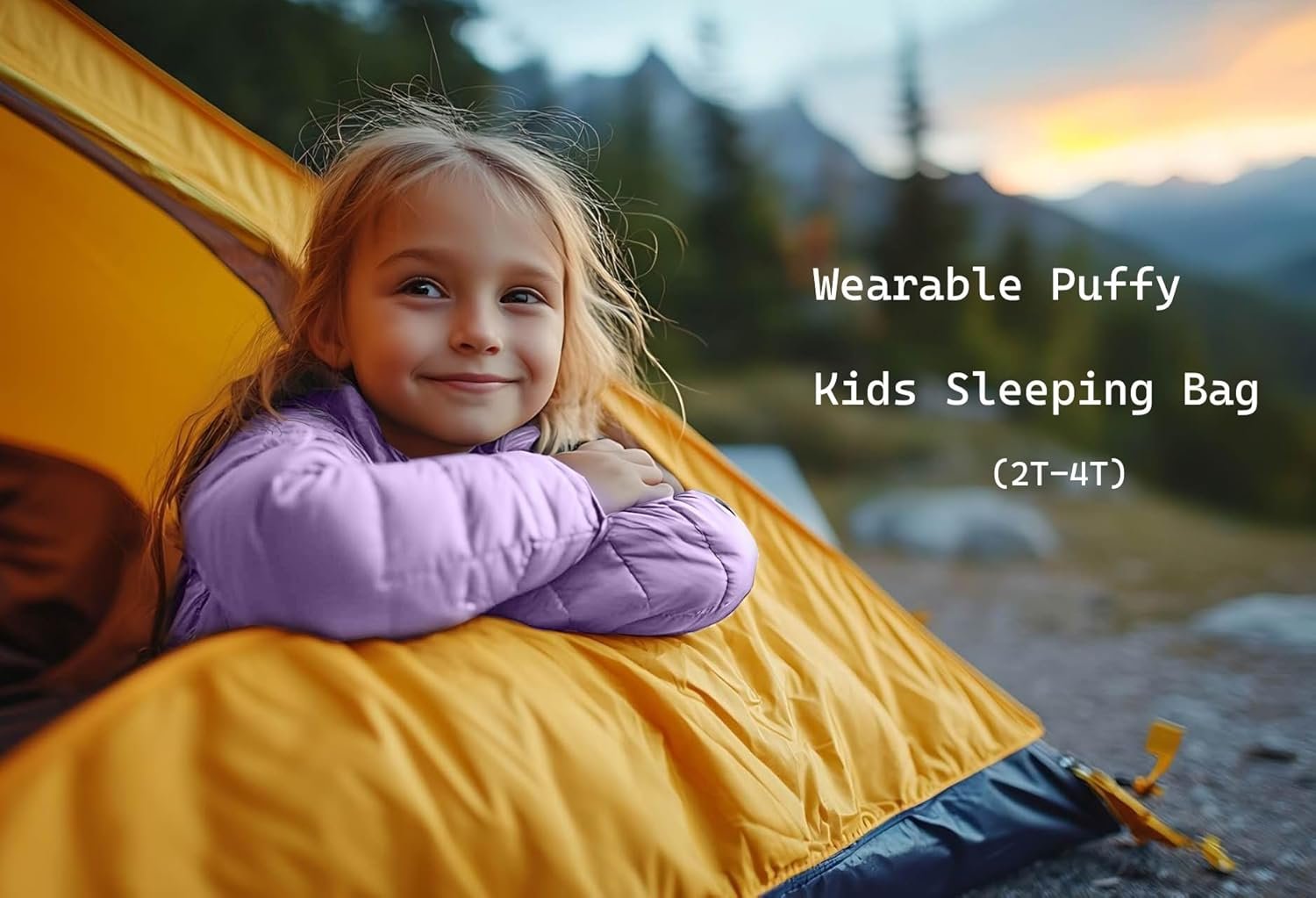 T40 Toddler Sleeping Bags Boys Girls | Ages 2-4 | Puffy Kids Sleeping Bag Camping Sleepovers |up to 46 in| Lightweight Compact Comfort for Indoor Outdoor Machine Washable