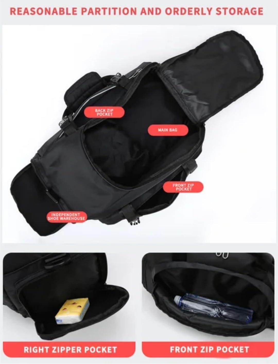 T60 Sports Duffel Bag with Shoe Compartment, Large Waterproof Gym Bag, Travel Carry-On, Back Pack