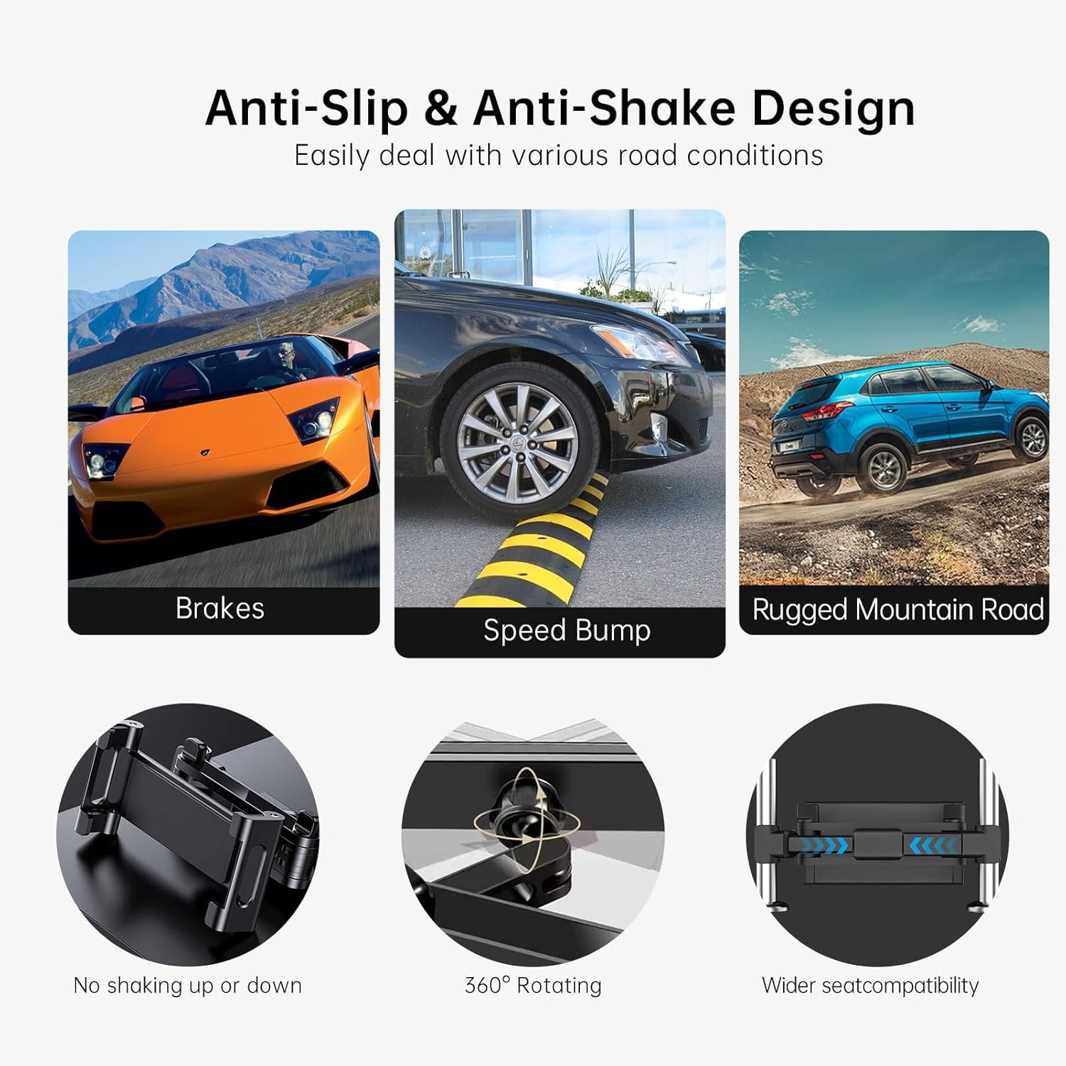 Secure Grip: Adjustable silicone holders firmly grip your device, keeping it securely in place during car rides. Simply attach the mount to the headrest posts of your vehicle’s front or back seats for quick setup.