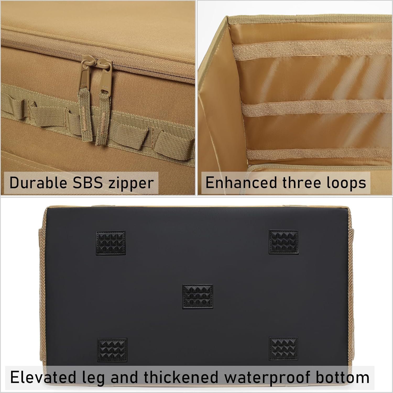 Versatile Camping Organizer: Our tactical camping organizer bag has stylish design and solid structure, it can make your items orderly and easy to reach. This versatile storage bag is perfect for camping, hiking, picnic, beach, travel, trunk organization and daily use, would be a great gift for anyone who need a hardcore storage bag. Three sizes to choose from: Medium (38L), Large (46L), X-Large (57L). Three colors to choose from: Black, Coyote Brown & OD Green.