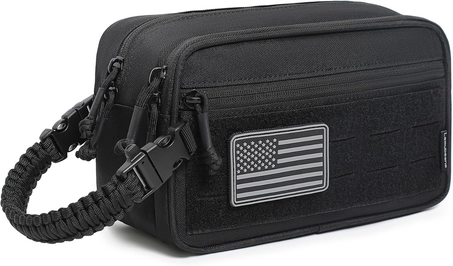 One item includes a tactical toiletry bag and an US flag patch. Made of durable 600D nylon and waterproof material. These tactical toiletry bags are meant to last for years and provide anti-scraping protection for even the most rugged users.