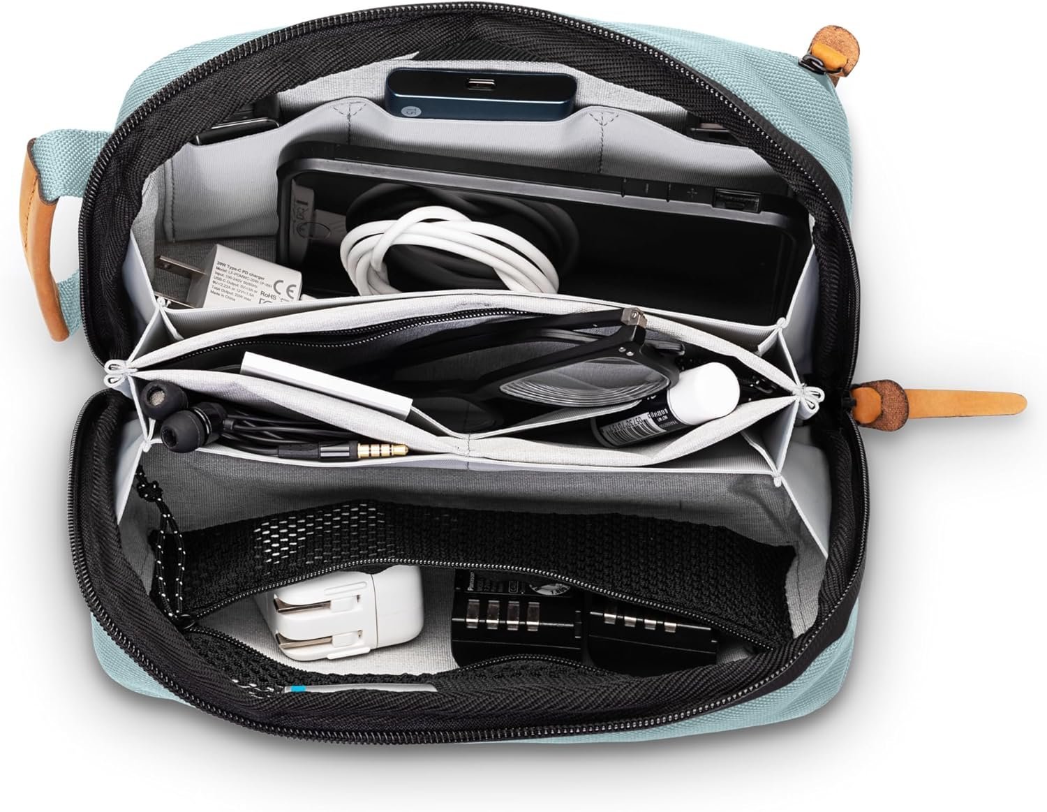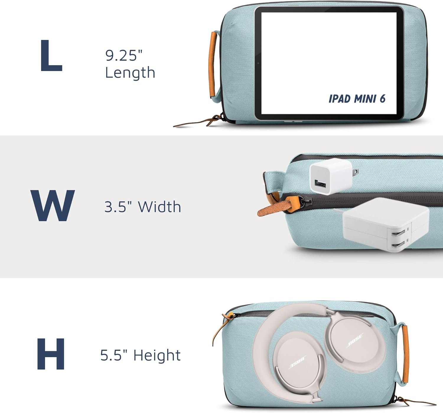 Tech Bag Organizer – Small Electronics Organizer Pouch for Travel – Premium Travel Case with Leather Accents – Mesh Pocket for Cables, Cords and Chargers (Dusty Teal)