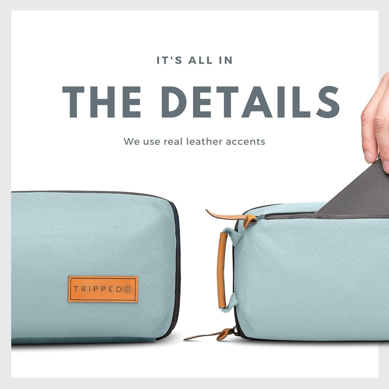 TRIPPED VS OTHERS: Our minimal design sets us apart with premium leather accents. Additionally, one side of interior has mesh pocket as a great place to pack smaller items, cord and cables. Our bags are also engineered to be the perfect size to carry all your essentials vs the other guys who have made large, bulky cases that don’t fit anywhere!
