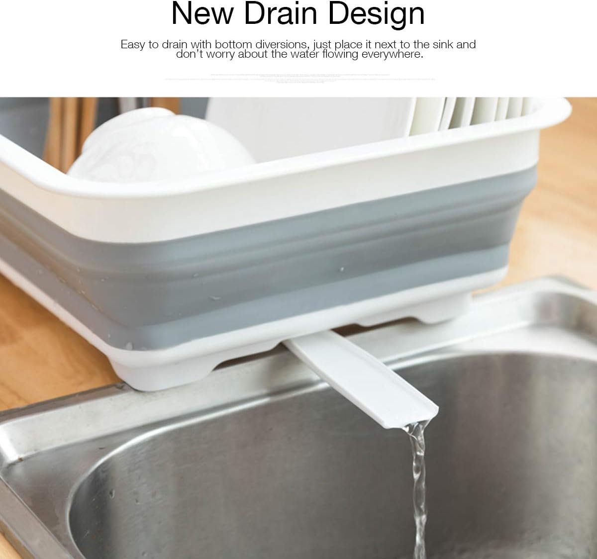 【Food Grade Material】Made from eco-friendly PP+TPR material that is BPA Free and Food-Grade. The flexible material allows the dish strainers for kitchen counter to collapse flat for easy space-saving and storage, making the most of your kitchen countertop.