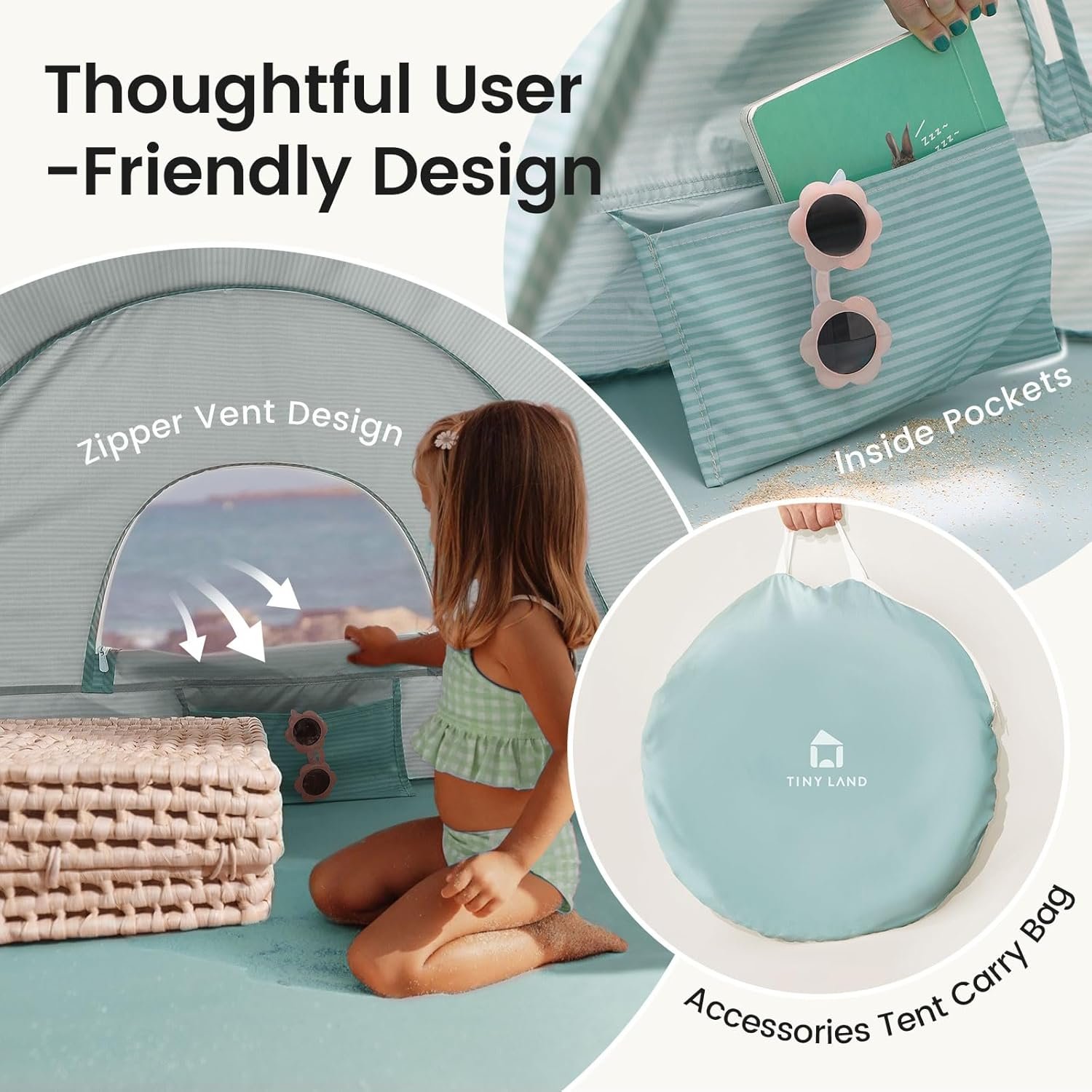Tiny Land Baby Beach Tent – Pop Up Baby Tent with UV Protection, Portable Baby Beach Essentials, 35″x28″x32″ Sun Shelter for Infants, Baby Outdoor Use (Green)
