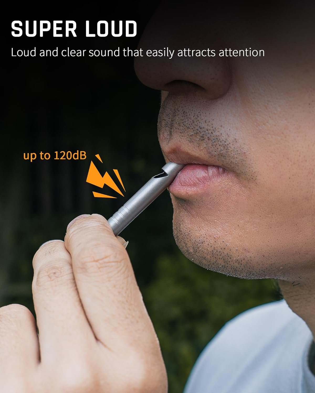 High Quality Titanium Alloy: This titanium survival whistle is made of high quality titanium, waterproof, corrosion-resistant, non-toxic, non-allergenic, can be used in a variety of complex environments, durable, and a must-have for your safety kit.