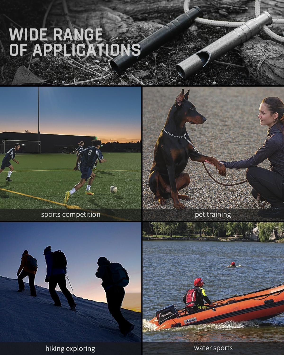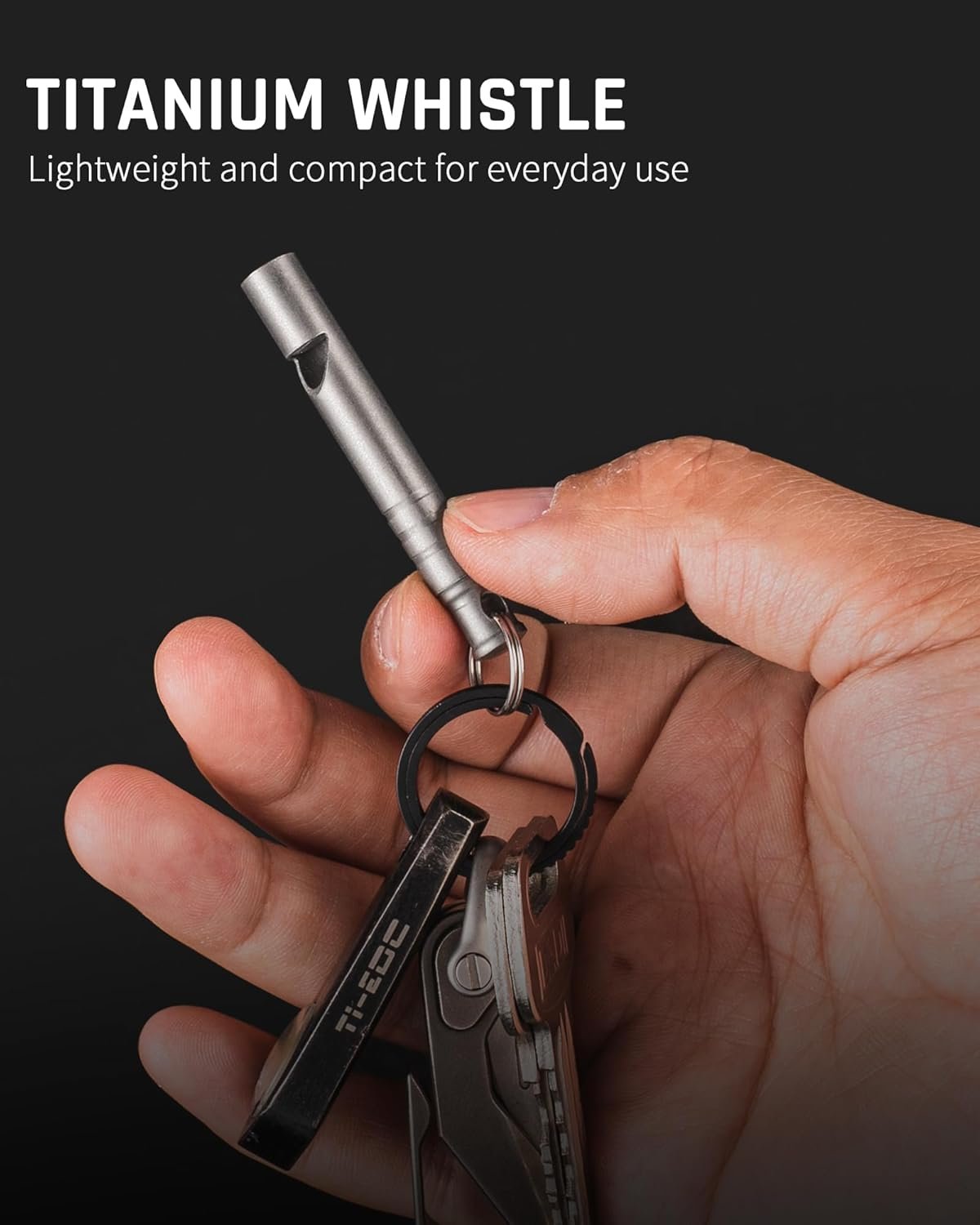 Multifunctional Whistle: Titanium whistle keychain is versatile and perfect for outdoor use, such as survival, camping, hiking, lifesaving, pet training, refereeing, coaching, boating rescue signals and more. Our whistles can attract the attention of others from a long distance and make you feel safe and protected.