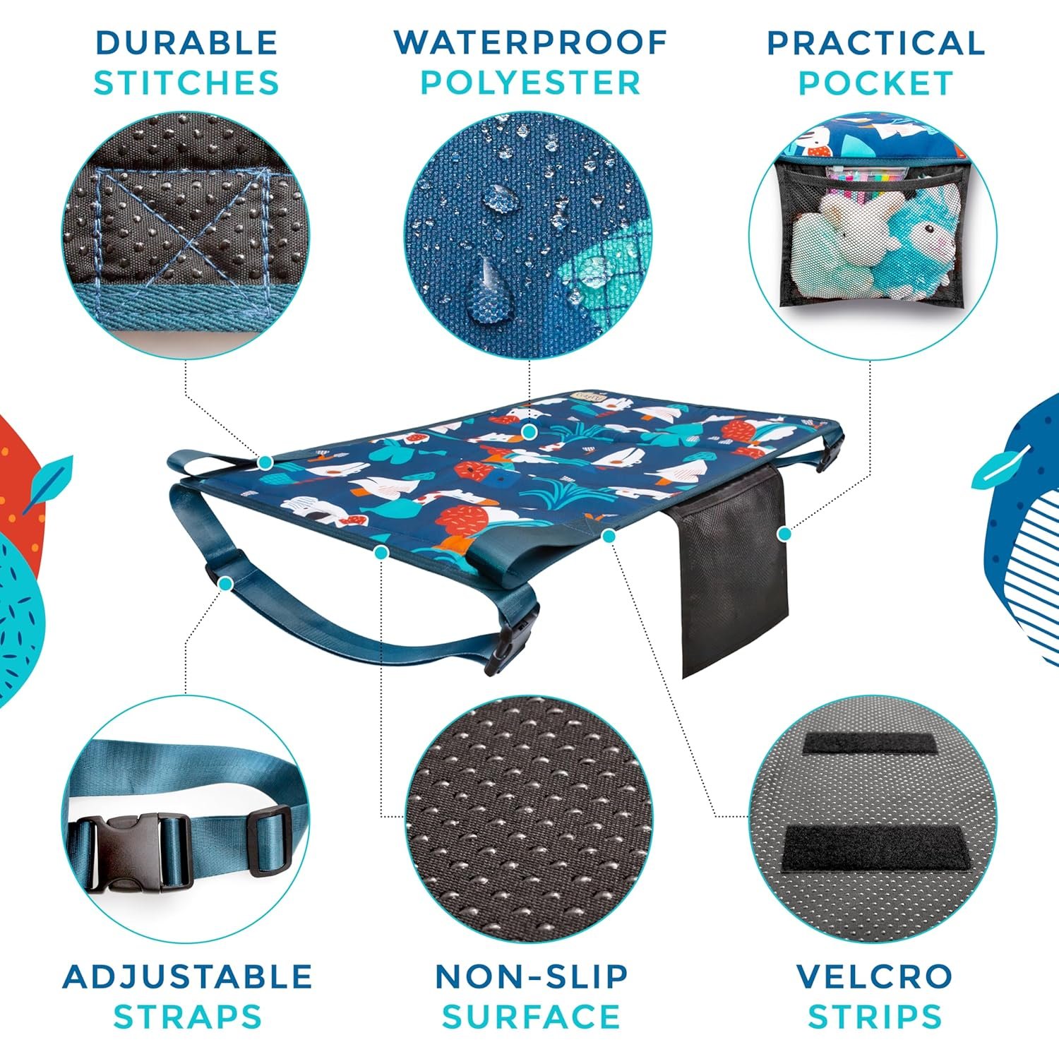 DURABILITY: CozyFly airplane seat extender for kids sets a new standard for durability, making it an ideal choice for families seeking a reliable and sturdy travel accessory. Its robust construction ensures long-lasting performance, giving parents peace of mind that their child’s comfort and safety are well taken care of during their journeys. Waterproof fabric makes it very easy to clean and maintain.