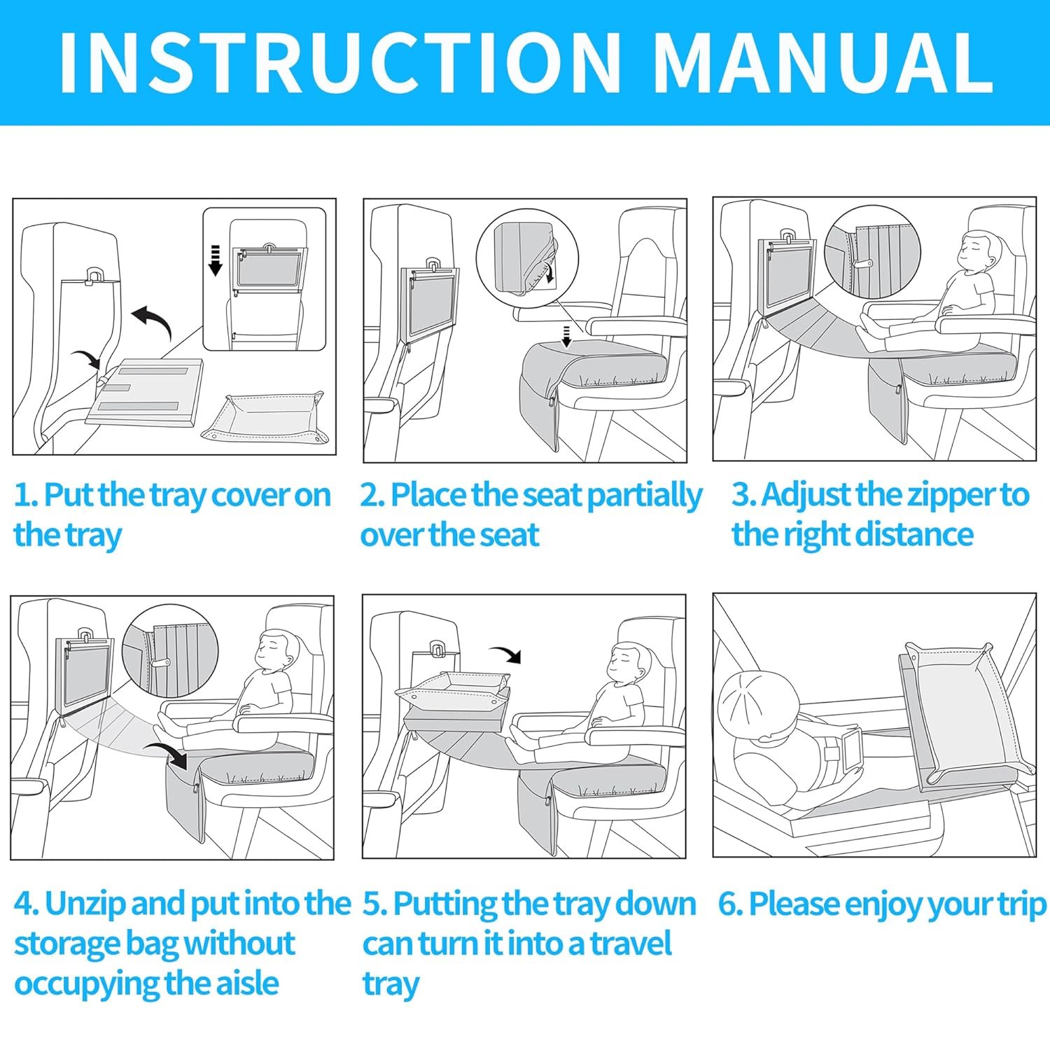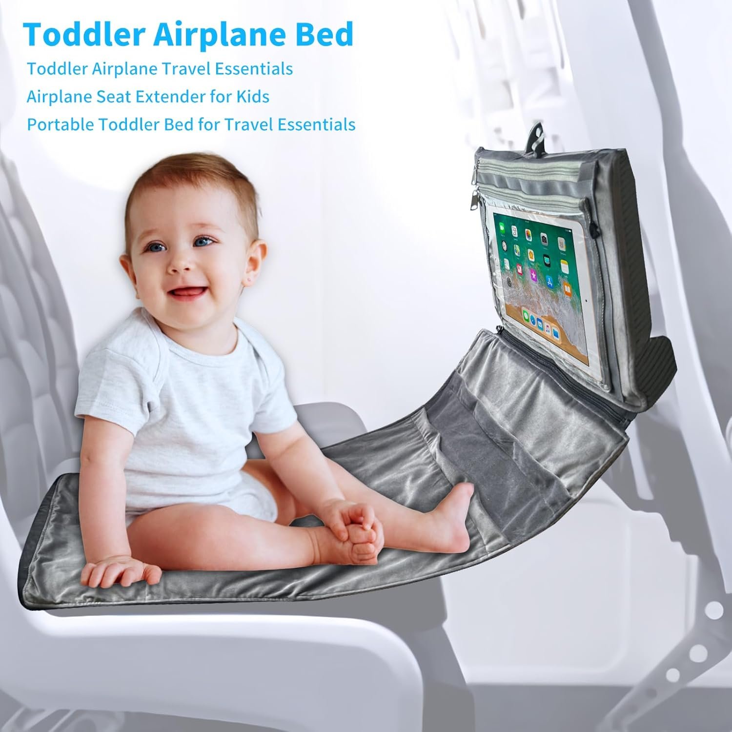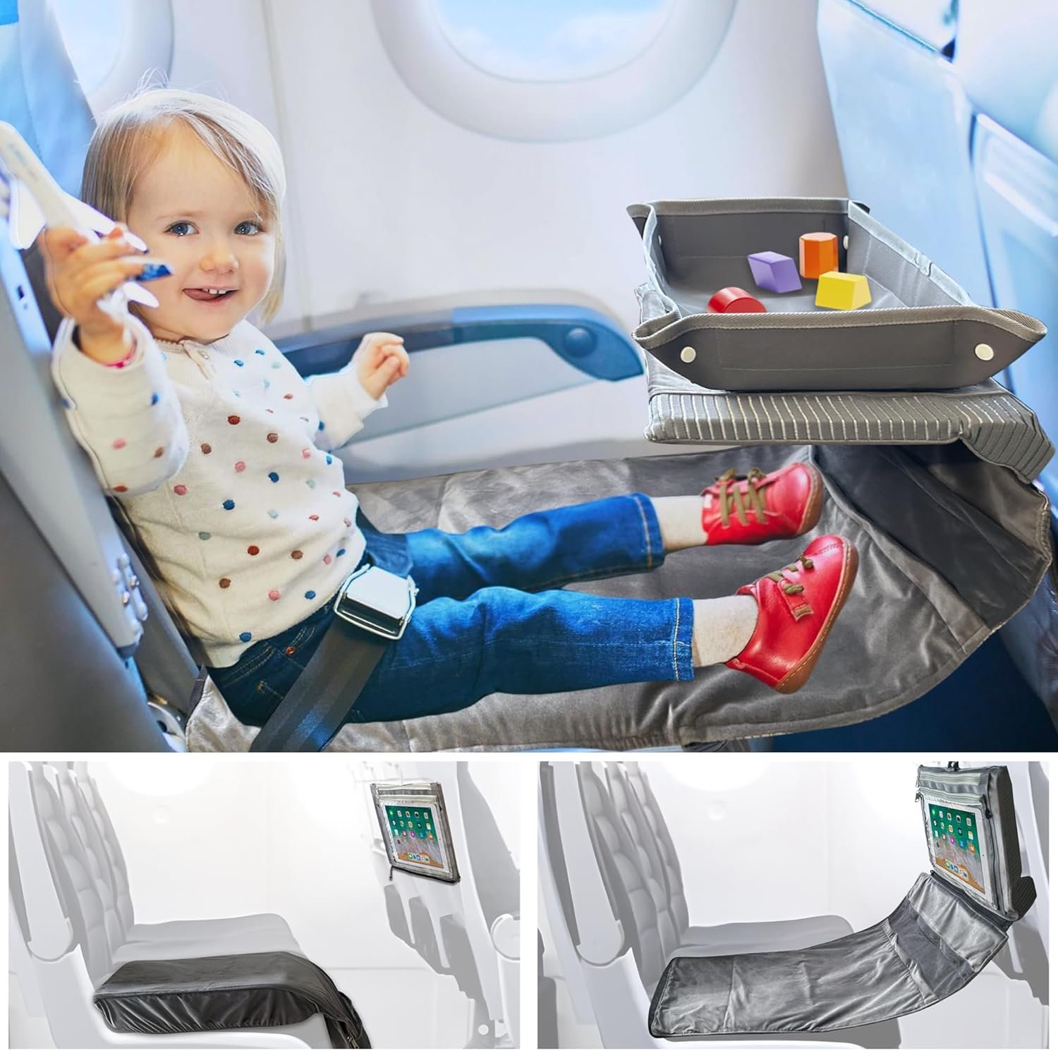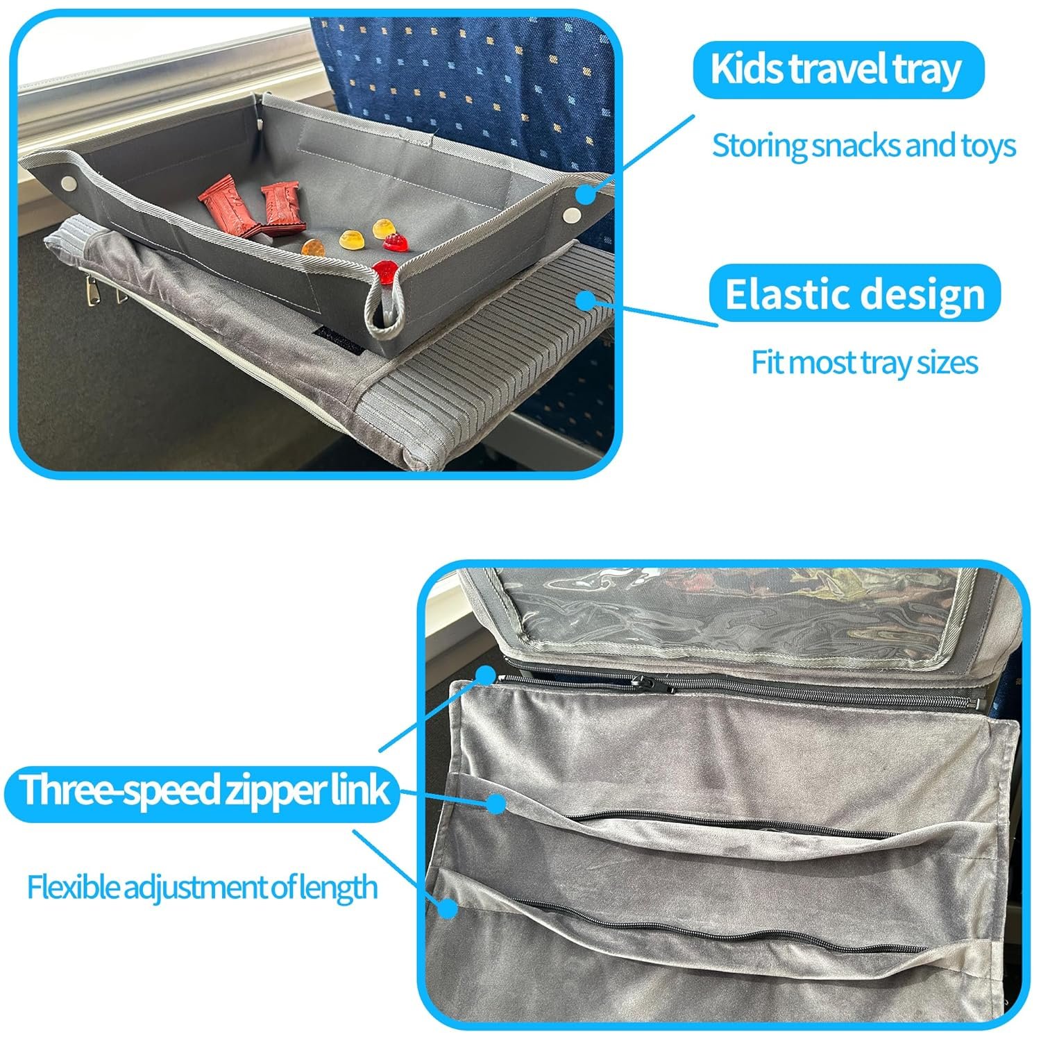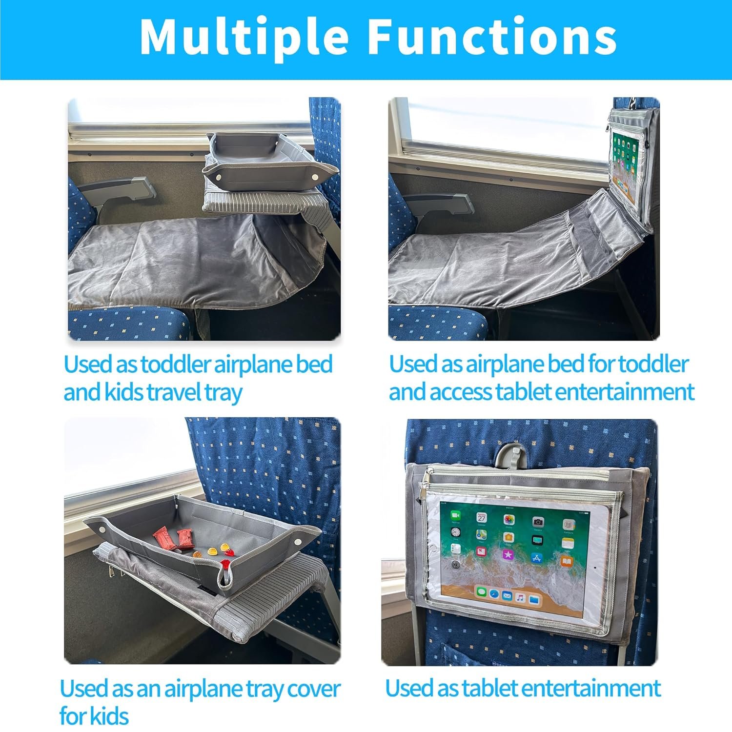 Airplane Bed for Toddler with Kids Travel Tray: Essential for multi-purpose airplane travel, used on planes, trains, buses or any mode of transportation, baby airplane bed come with a airplane tray cover to keep the tray table hygienic, while the airplane tray cover kids includes pockets for organized storage. And can also be used as a a hygiene-friendly knee table, tablet stand, activity area, or food catcher, all while providing a comfortable space.