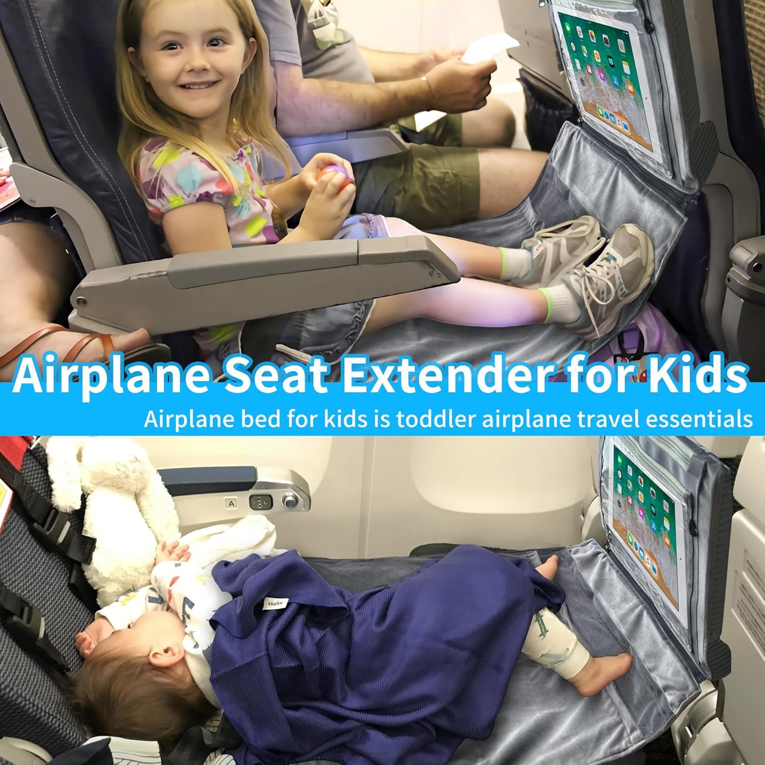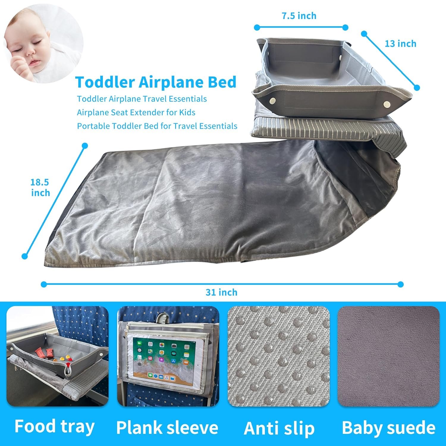 Toddler Airplane Bed with Kids Travel Tray,Airplane Bed for Toddler Airplane Seat Extender for Kids, Airplane Travel Essentials Kids,Airplane Tray Cover with Pockets (Kids Airplane Bed)