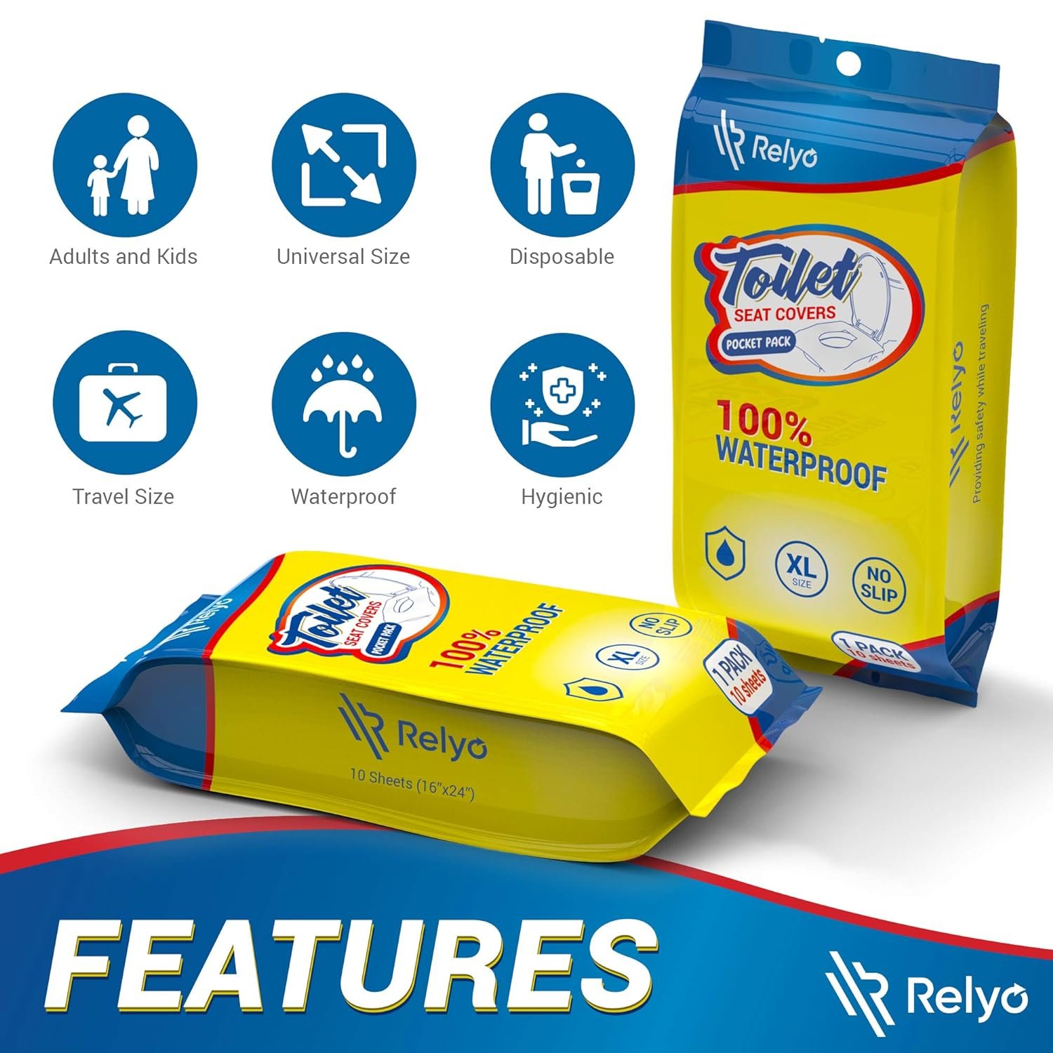 ✔️ 100% WATERPROOF – Made from 2 layers of plastic liner on one side and soft touch paper on the other side make the Relyo Toilet Seat Covers the perfect solution for your travel peace of mind.