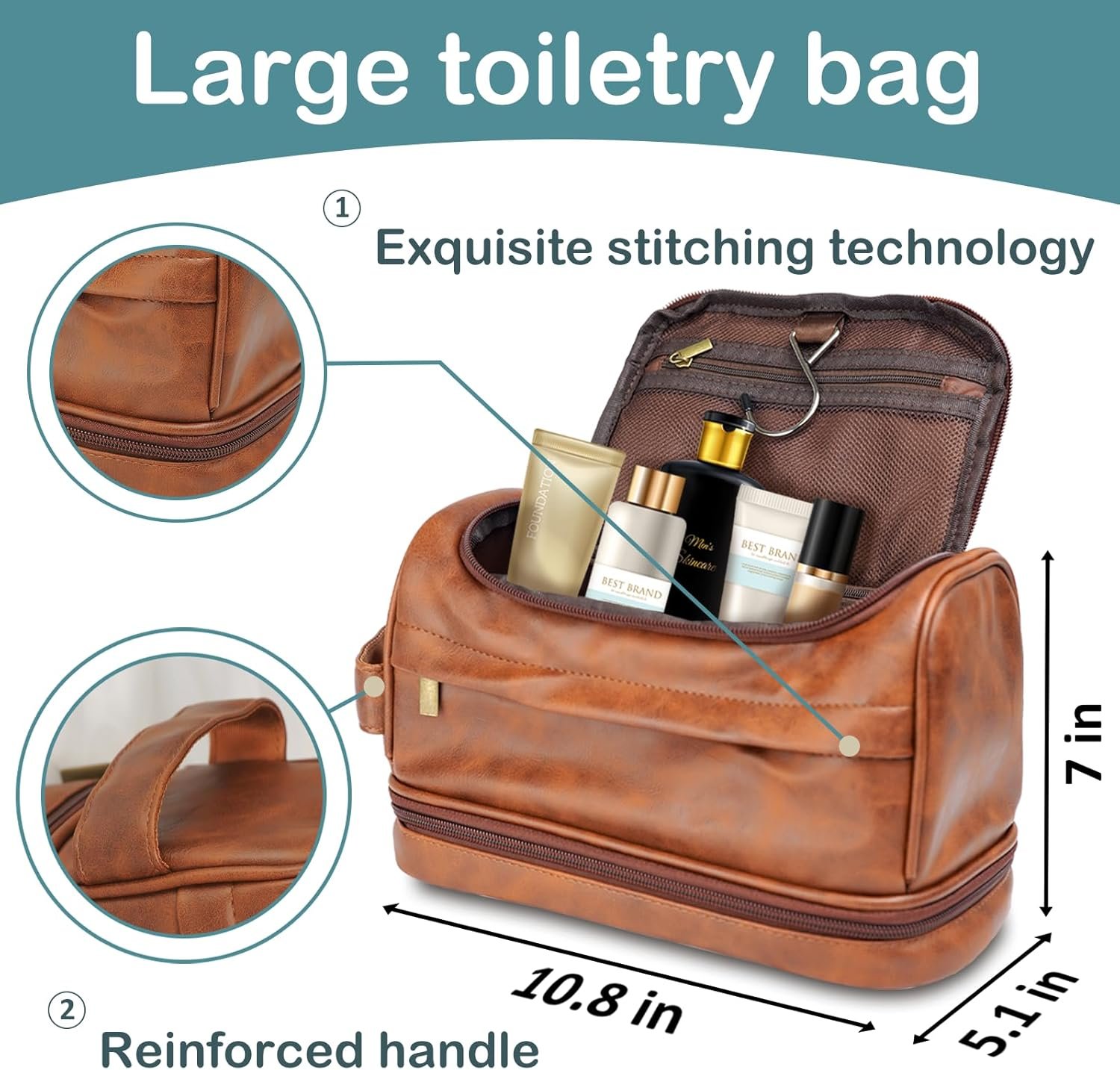 Toiletry Bag for Men, Leather Travel Bag, Waterproof Dopp Kit, Gifts for Him, Boyfriend, Groomsmen, Dad, Traveler, Boys, Grandpa