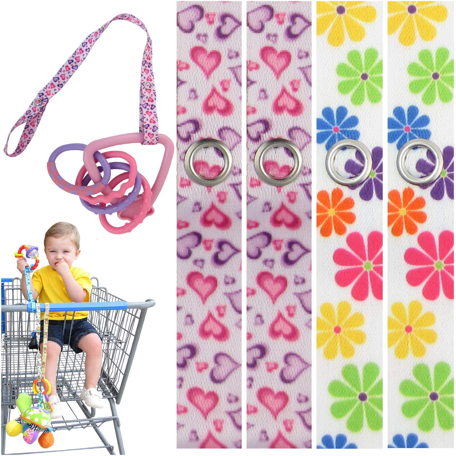 Toy Saver Strap Holder Leash Secure Accessories Flower/Hearts – 4pc
