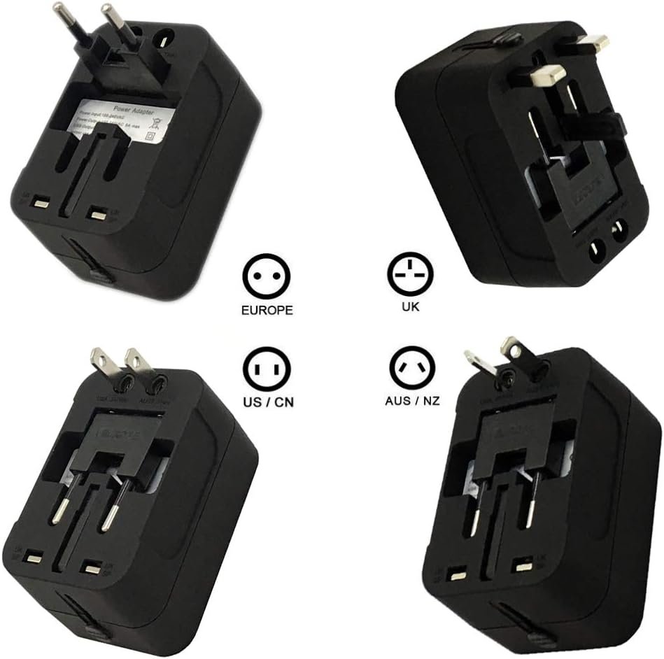 【Multiple Options+ 2 USB ports】– This all in one travel adapter is integrated with US/EU/UK/AU plugs, 2 USB charging ports and 1 universal socket, this all in one plug adapter is supporting sockets/plugs from more than 150 countries and compatible with almost all USB devices.