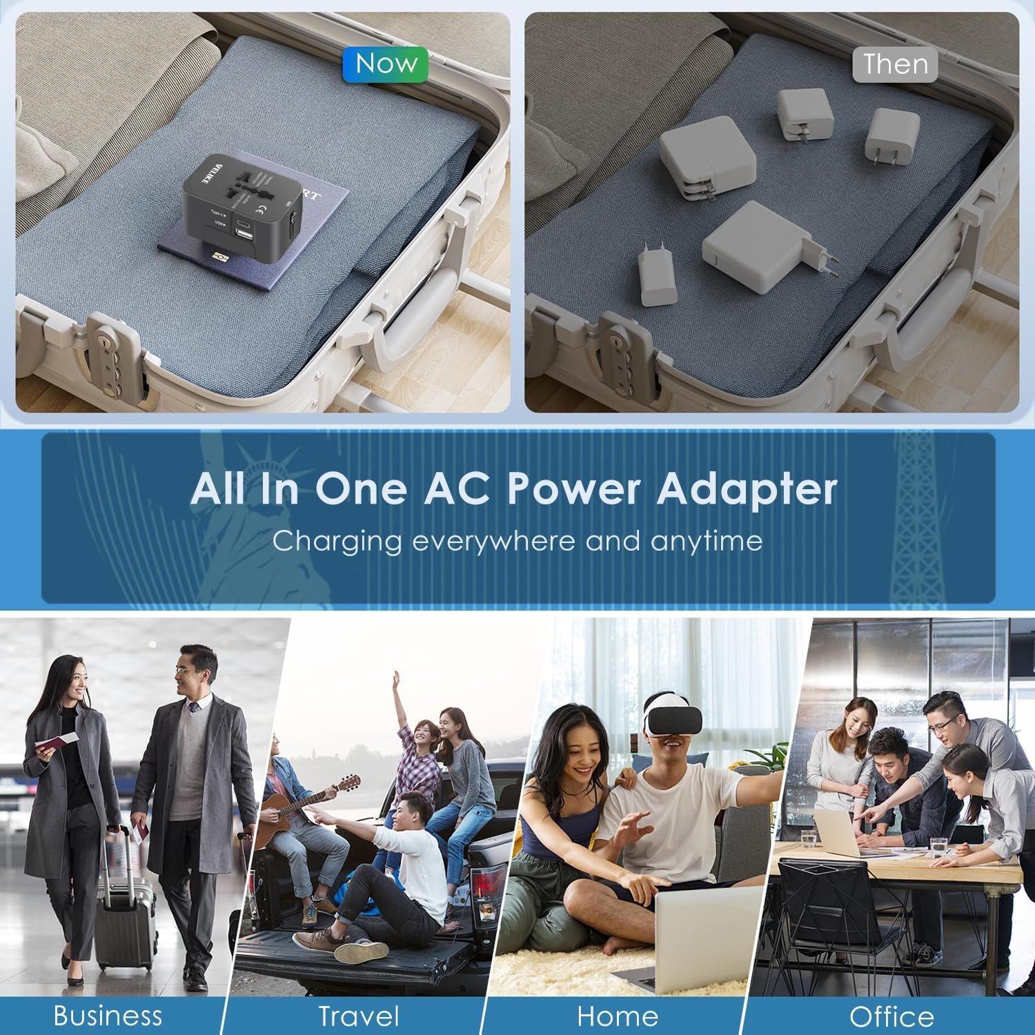 【Explore Without Limits】Discover the ultimate power adapter for international travel over 200 countries. With high-speed USB C and USB A charging ports, this compact, lightweight, and sturdy travel adapter can charge multiple devices simultaneously. No need to carry extra adapters and power strips for your journey.