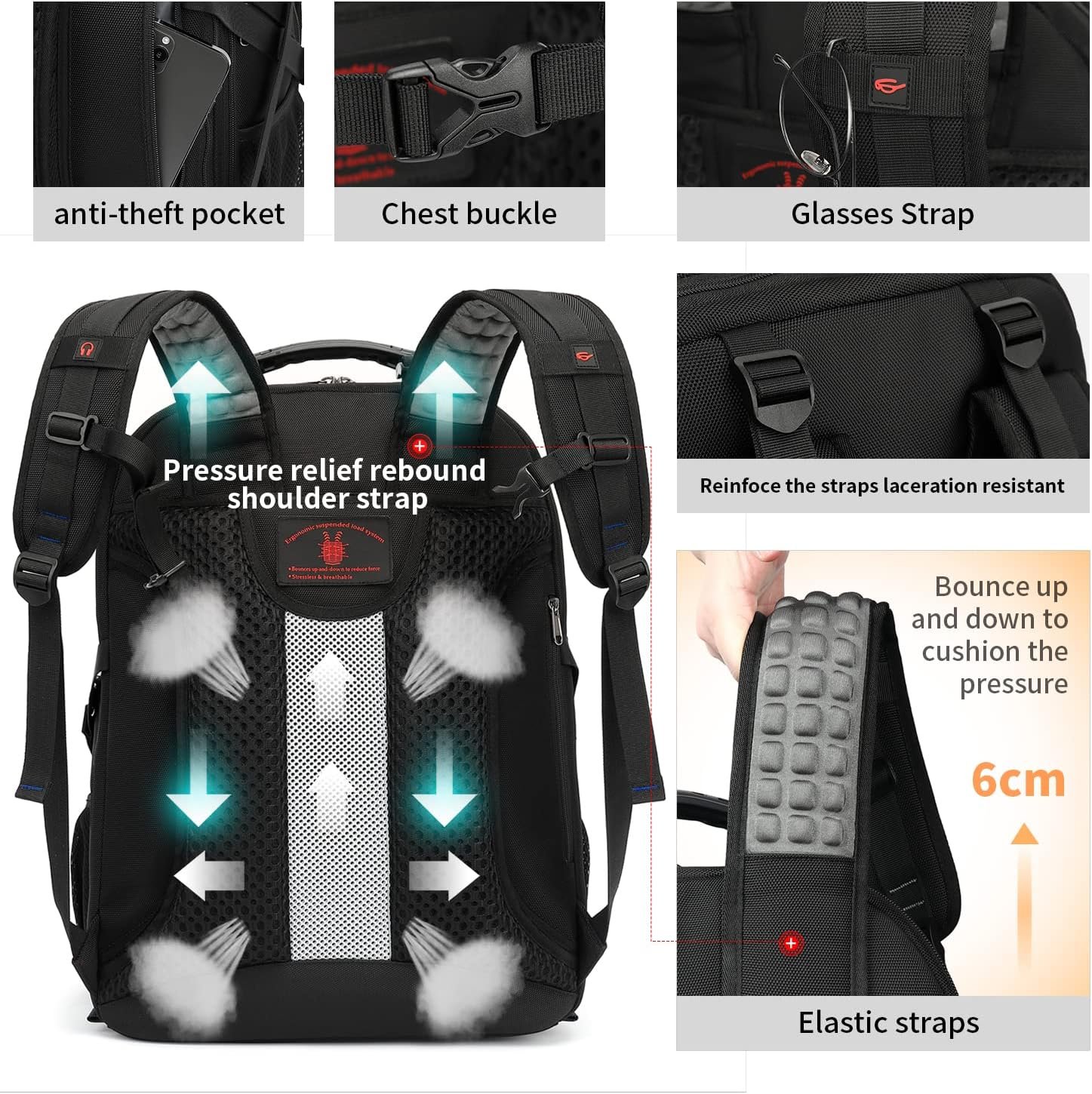 EFFORTLESS PACKING & AMPLE STORAGE: Effortlessly organize your belongings with our thoughtfully designed backpack. Five exterior pockets allow for easy packing, while the spacious main compartment holds 3 or 4 days’ worth of clothes. Protect your laptop in the padded compartment, and stay organized with pen sleeves, card slots, key leash, RFID pocket, and hidden security pocket. Travel with peace of mind knowing everything has its place