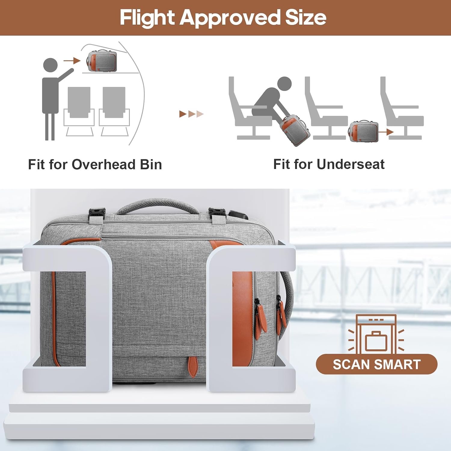 Carry-on Backpack, Flight Approved-Size: 18″ * 12″ * 7″. Meets most airline carry-on requirements, fitting under the seat or in the overhead bin. Includes a luggage strap for easy attachment to your suitcase, plus two padded handles for easy switch between backpack and suitcase. Check your airline for size limits before traveling.