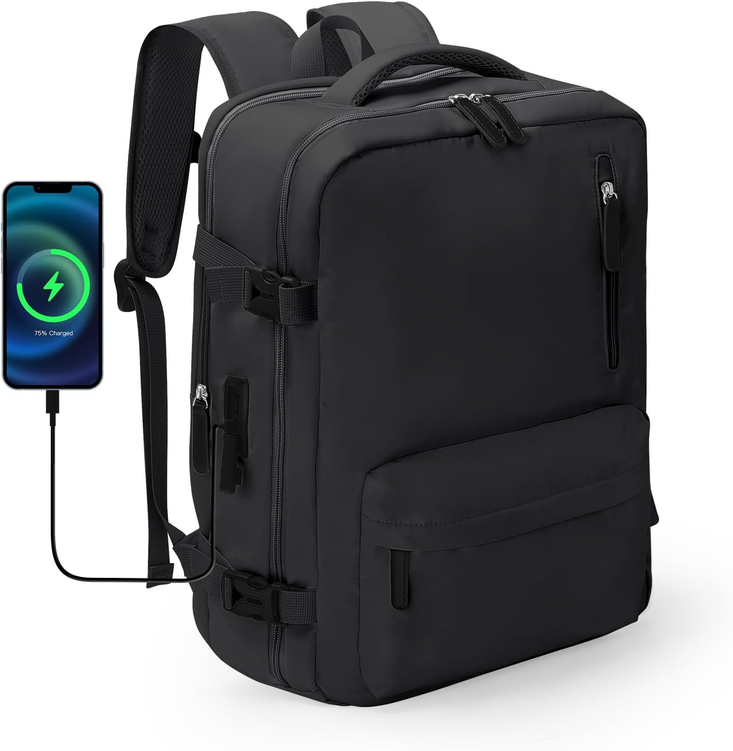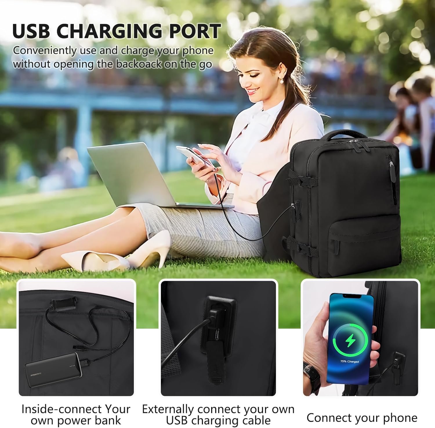 【USB Port Design】Backpack external USB charger with built-in charging cable makes it more convenient to charge your cell phone while walking.The 180 degree zipper closure of the travel backpack can help you quickly pass through security checks. Suitable for placing overhead luggage racks or under seats. This portable backpack makes your journey more enjoyable and convenient.Carry on backpacks for traveling on airplane also meets airline carry-on requirements.