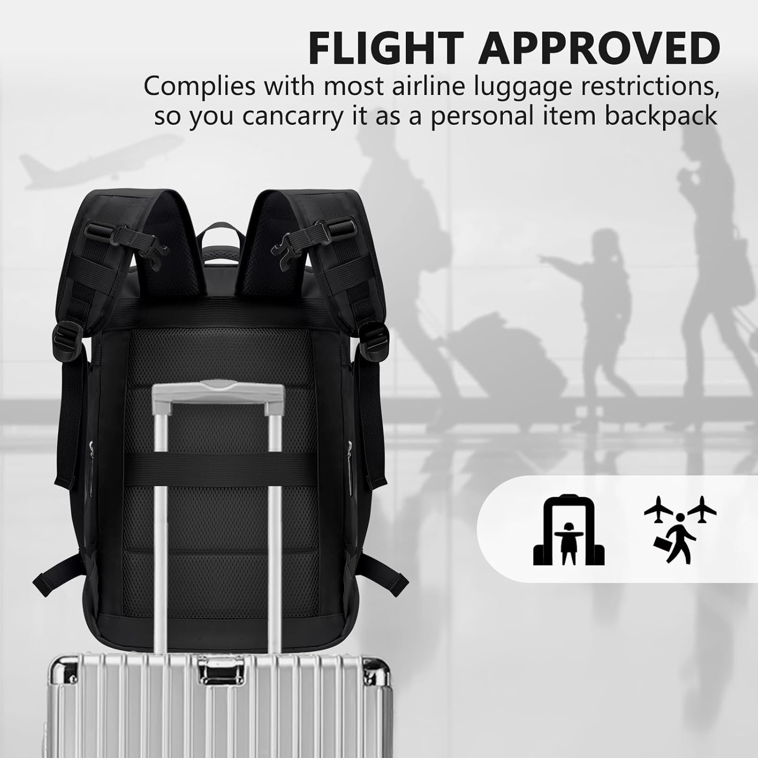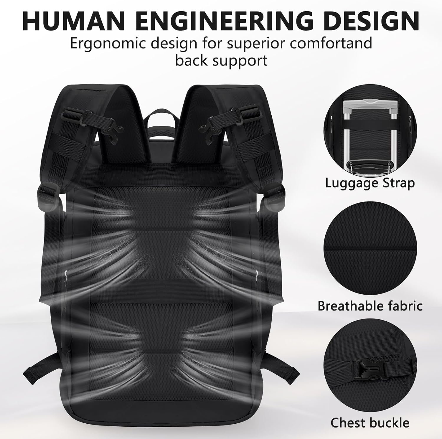 Travel Backpack for Men, Durable Luggage Bag, TSA 15.6 Inch Laptop Backpacks for Personal Item Weekender Business Hiking, Black