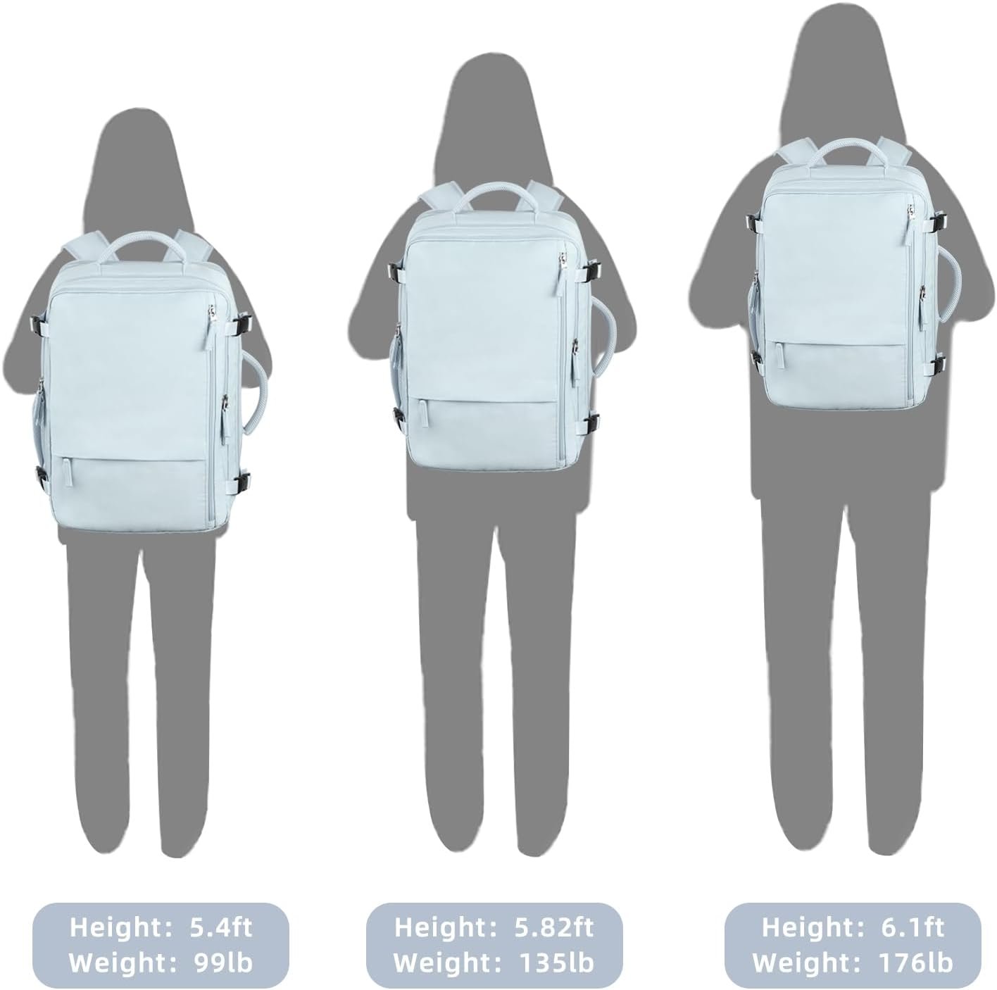 Personal Item Backpack: Snoffic travel backpack carry on flight approved size is 16.9*11.8*7.87 inches(L x W x D) and weights 2.5 pounds(1.14 kg). It meets airline personal-item requirements. If you don’t want to carry it on your back, you can stow the backpack’s straps and it’s a compact suitcase