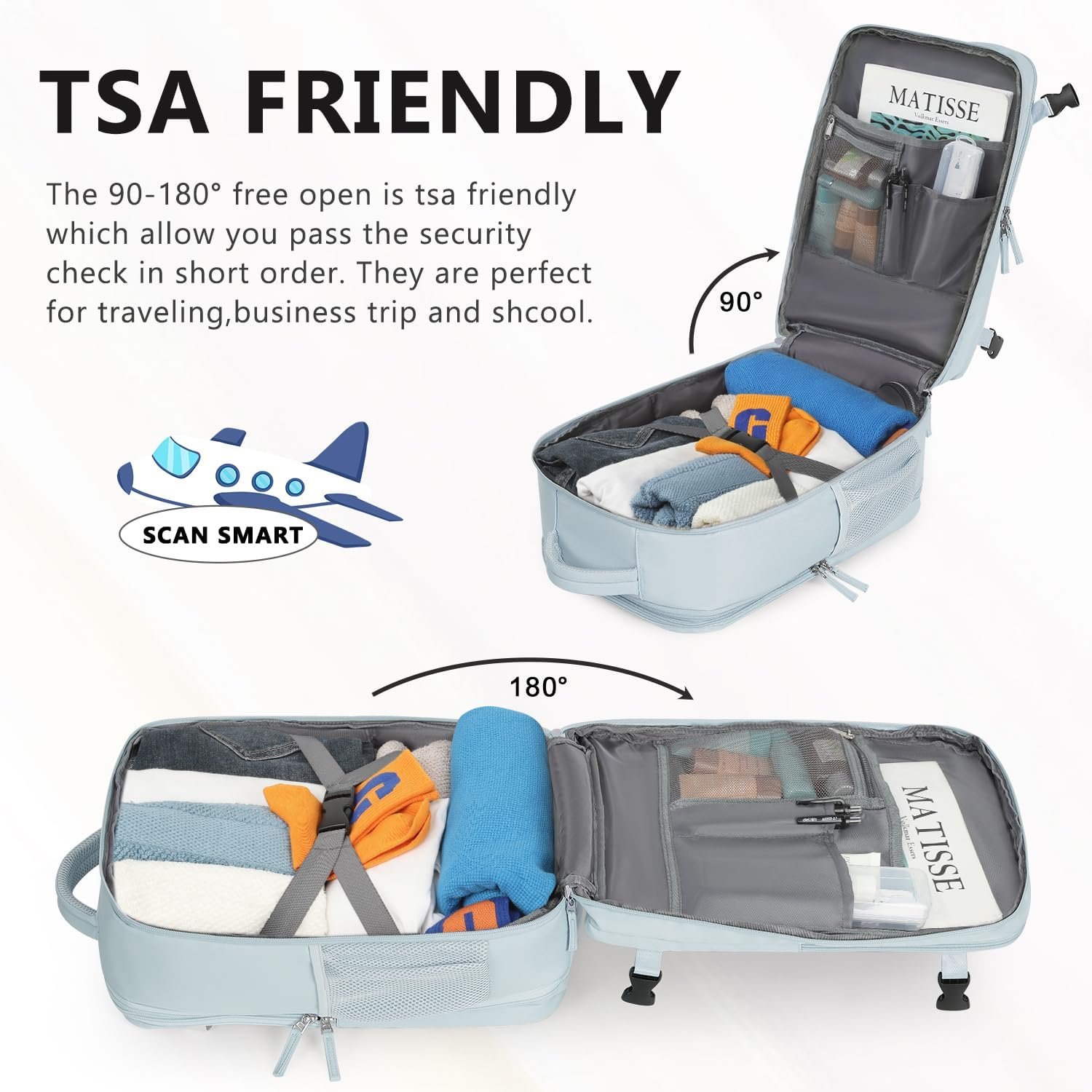 Top Material & Superb Technology: Our travel backpack are made of top 290 twill composite fabric. There are 148 procedures involved in the manufacture to ensure the quality. The backpack is waterproof and keep your items from getting wet