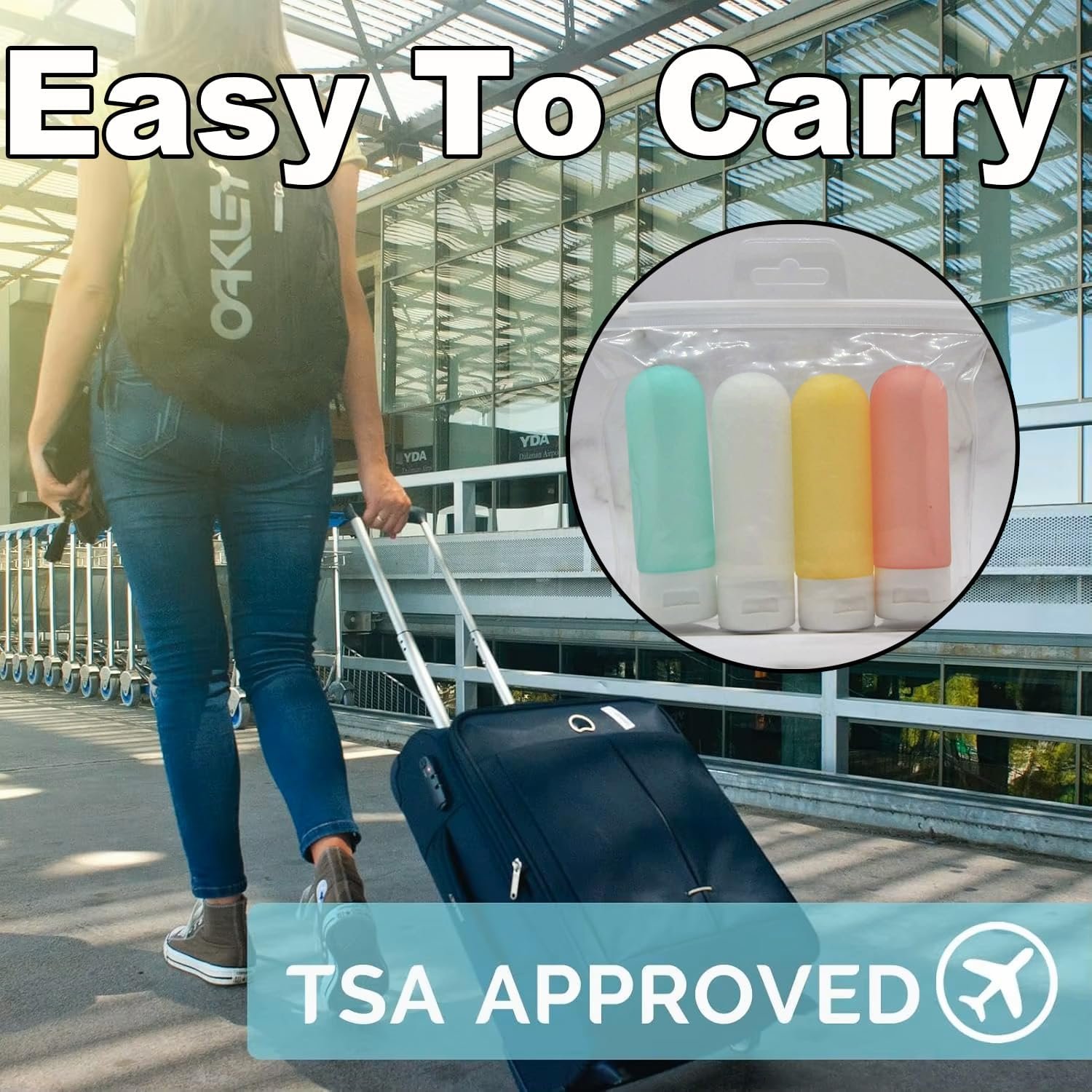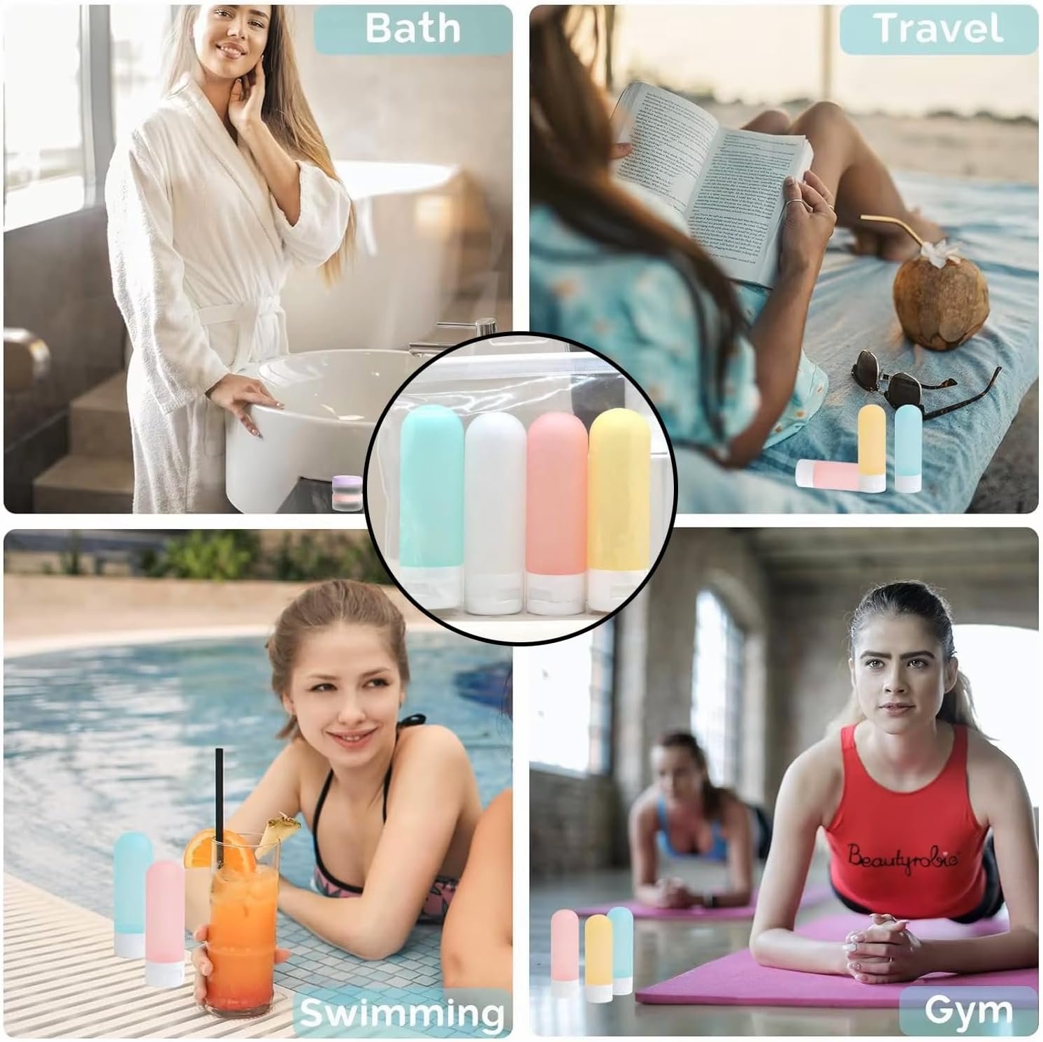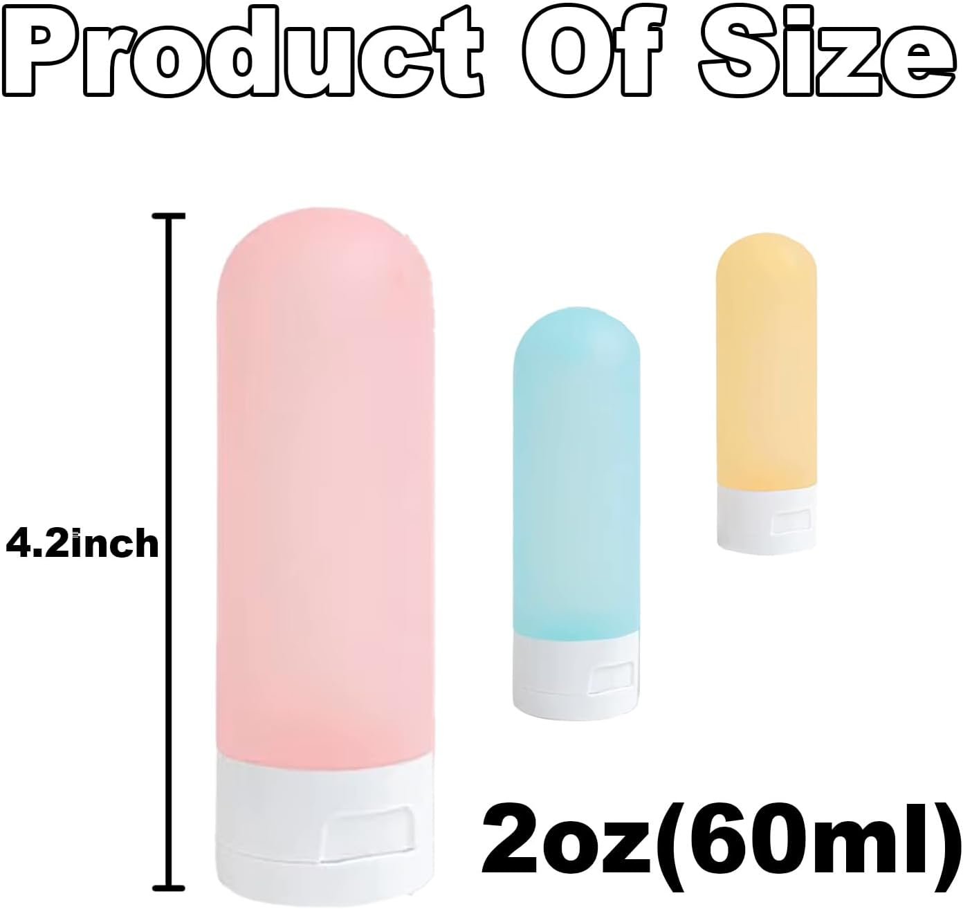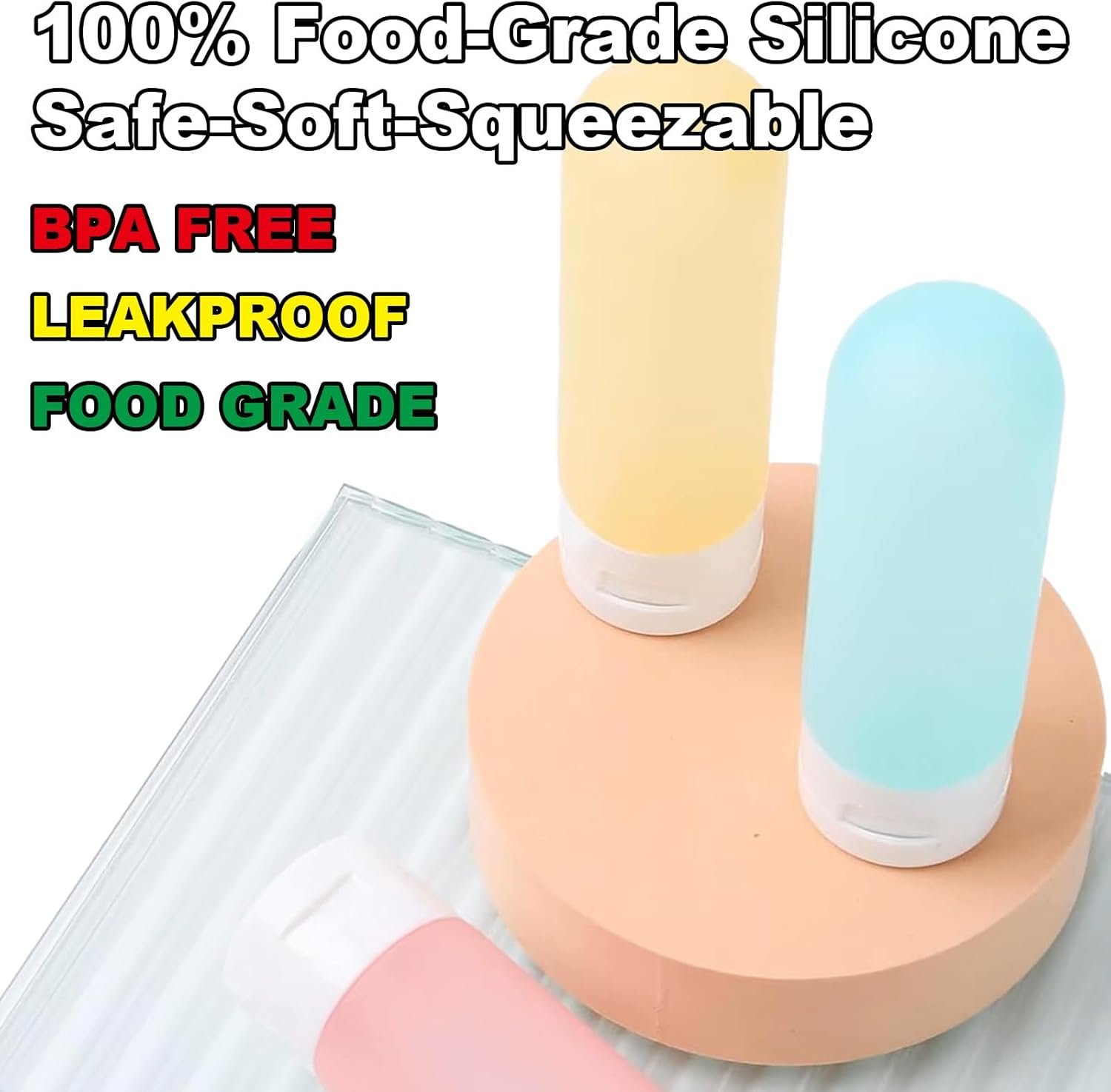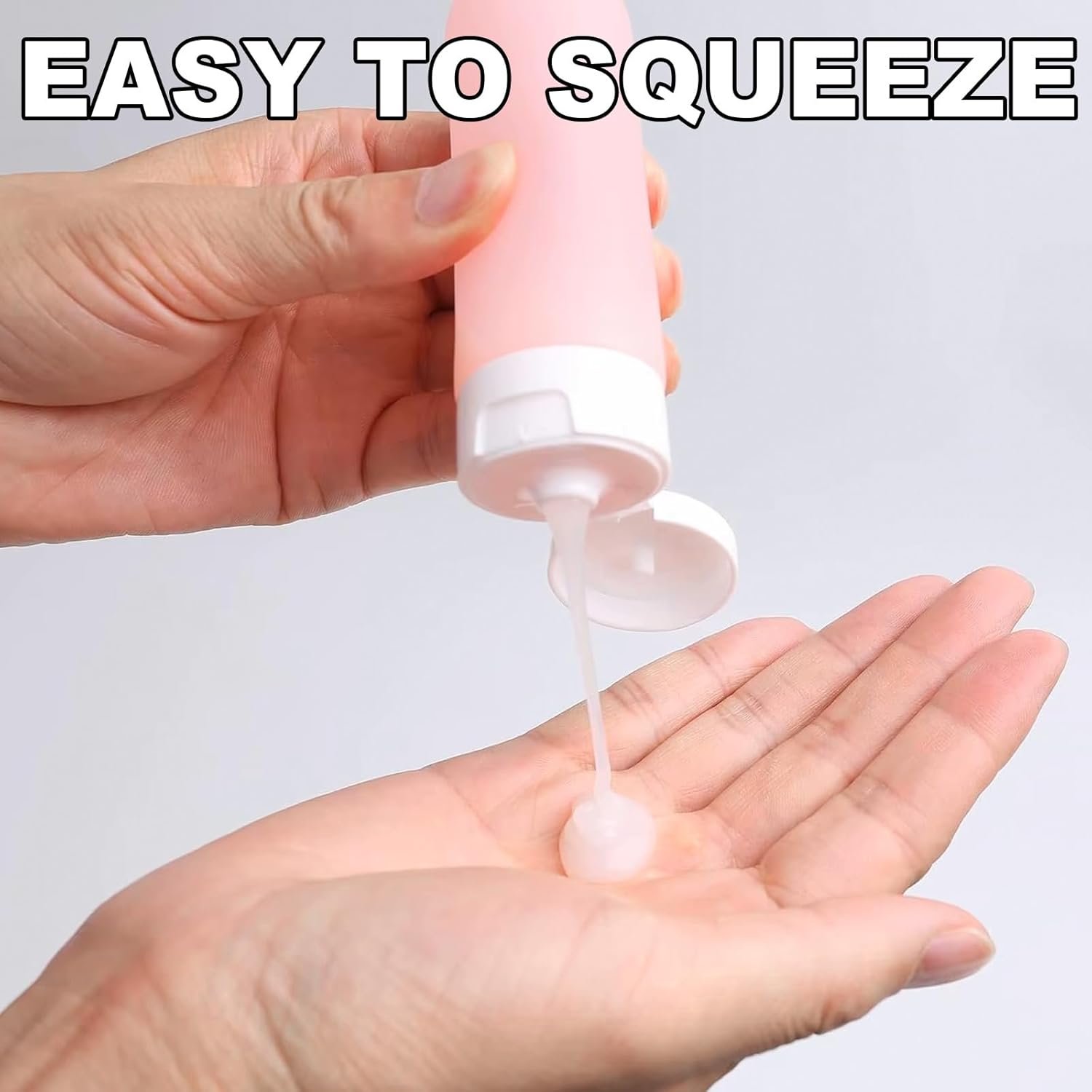 Leak-Proof Silicone Design: Squeezable food-grade silicone bottles prevent messy spills with an anti-leak valve and triple-sealed flip cap – contents dispense only when pressed, keeping luggage stain-free.