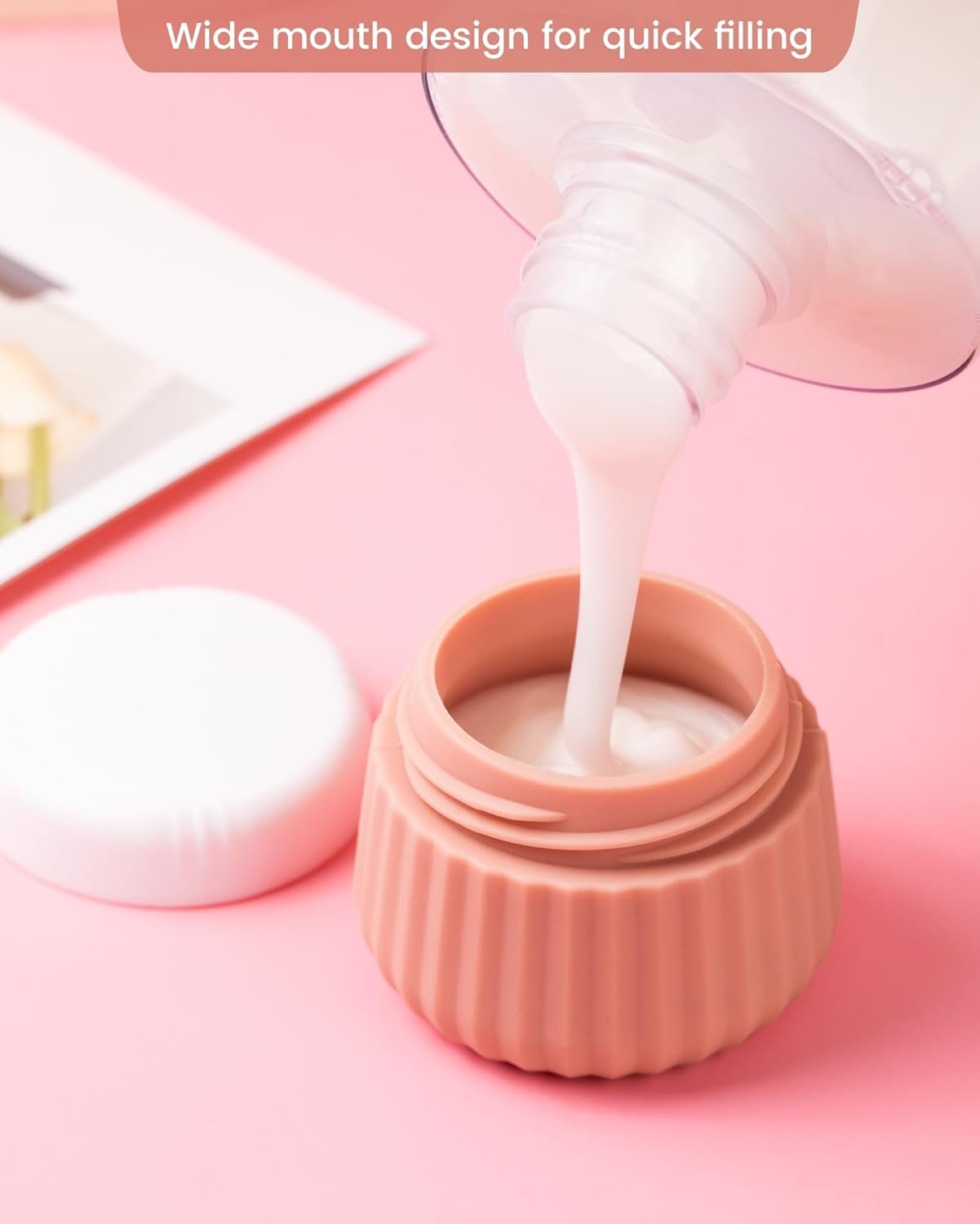 Travel Essentials: The set includes 4 silicone face cream jars and a rose gold transparent cosmetic bag. Designed for travel, easy to carry and highly functional.