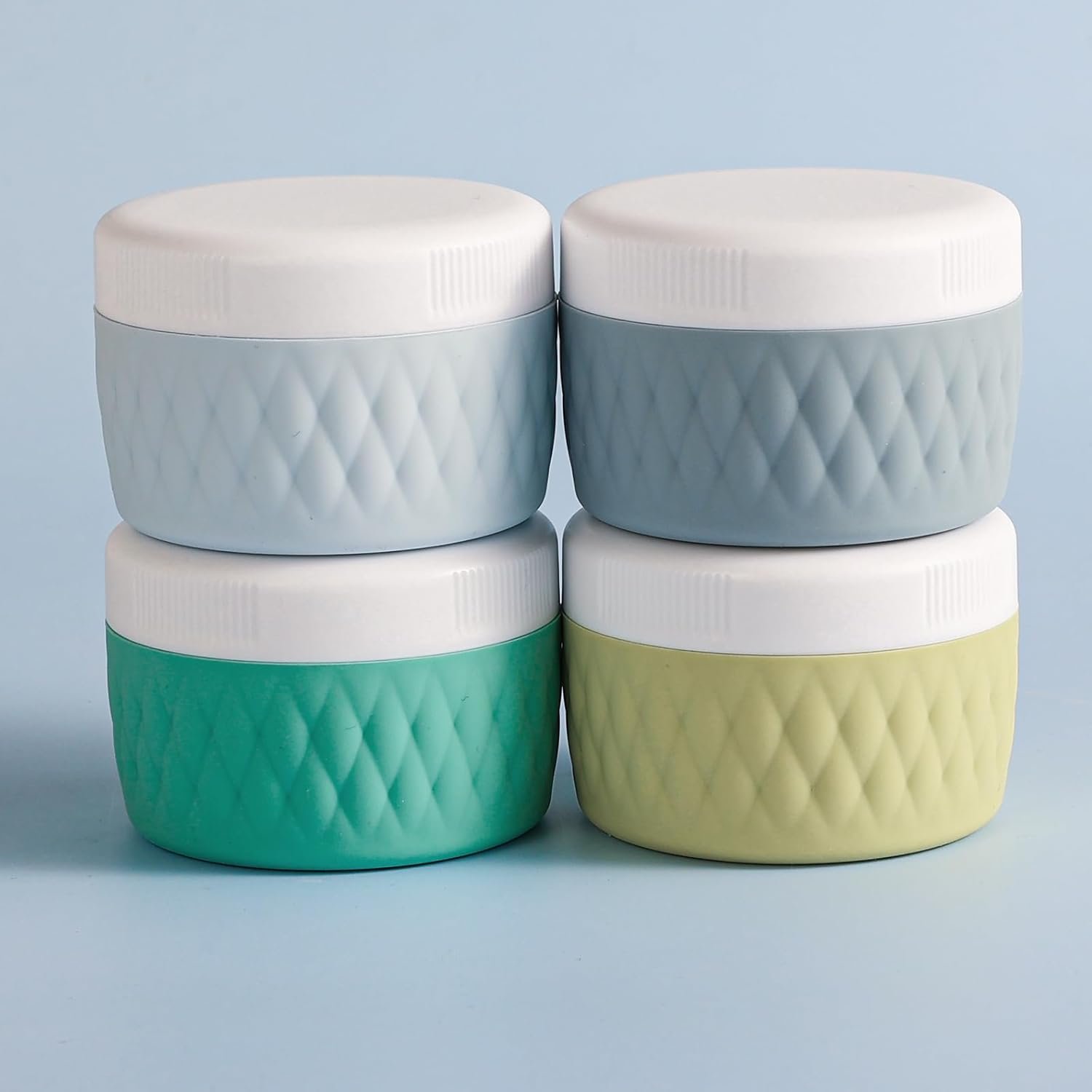 Travel Size Containers: The travel containers for toiletries includes 4 travel silicone cream jars are made, Different colors make it simple to identify which product is in each container.