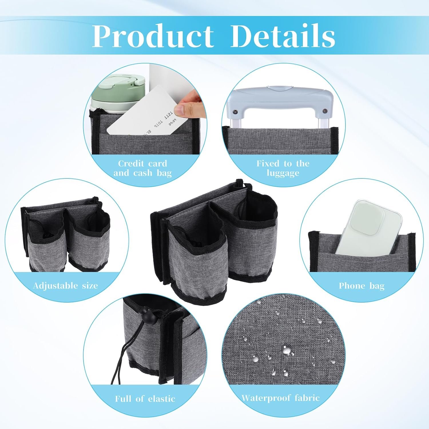 【Wide Range of Uses】The travel cup holder for luggage has a pocket on the back, which can temporarily store mobile phones, passports, cash, travel maps or small items, etc