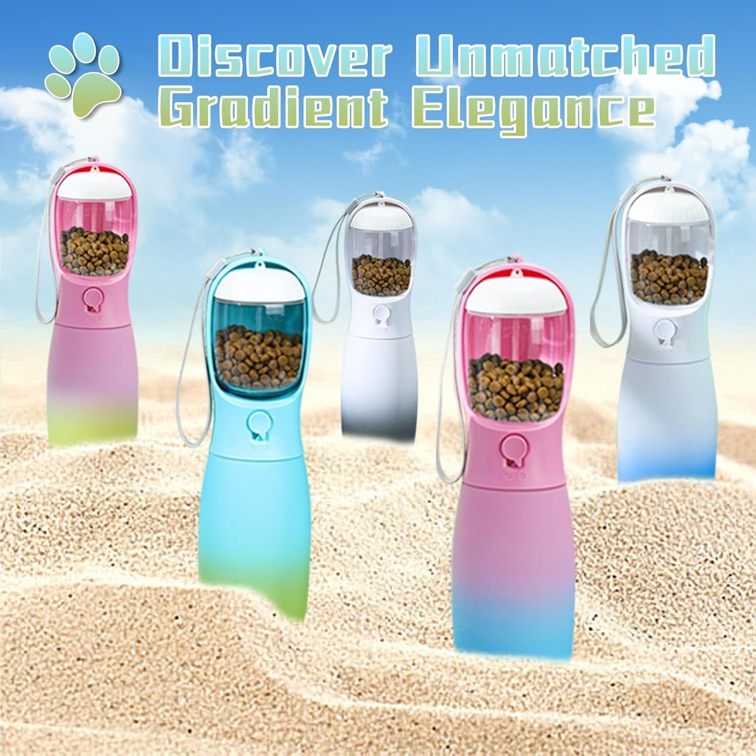 Dog Water Bottle & Treat Container: Our dog walking accessories combine a 19oz large capacity pet water bottle with an extra pet food container, ensuring your furry friend has both food and drink covered during outdoor walks, hikes, camping, and travel. The unique color design makes our pet water bottles the perfect dog presents for birthday, party or any occassions.