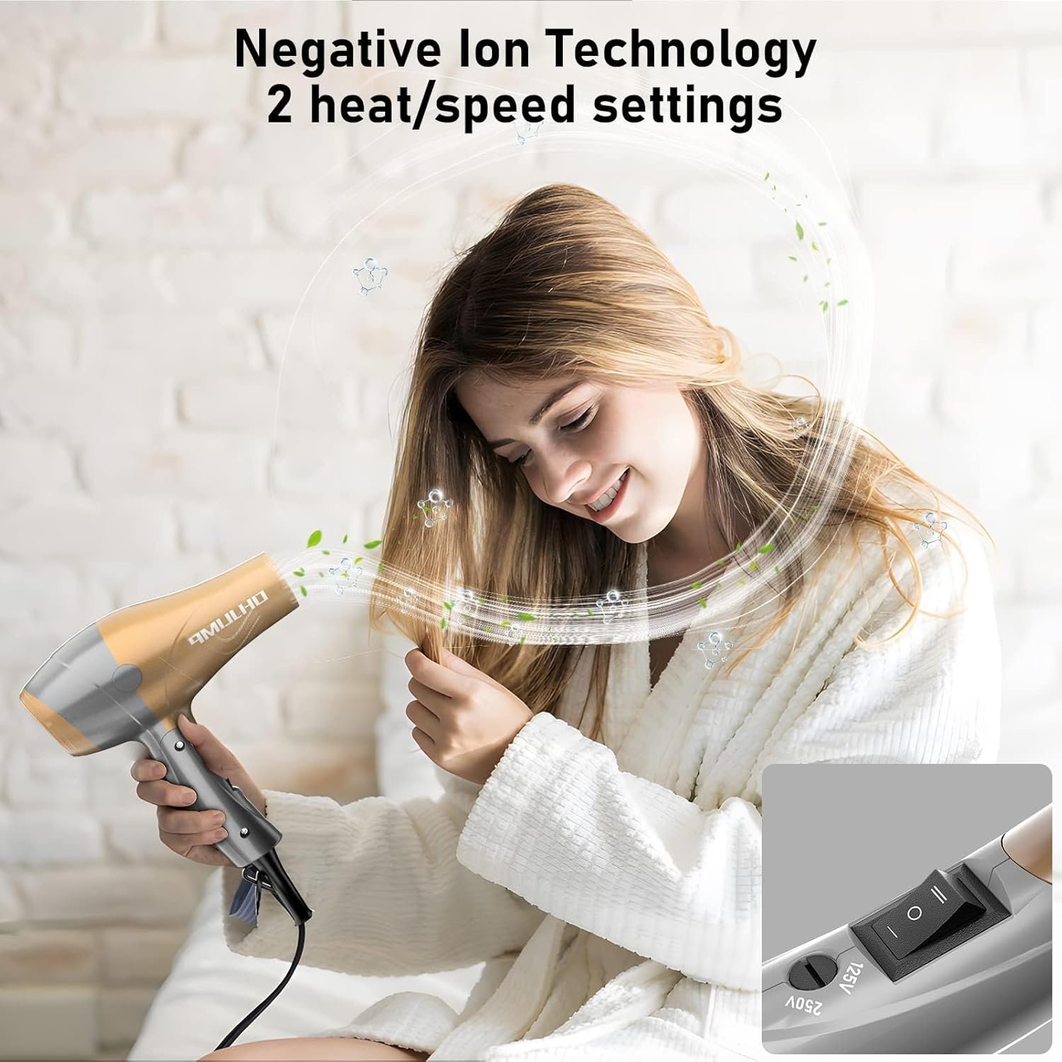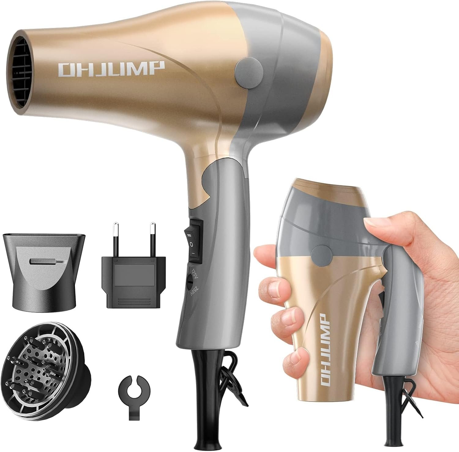 【125/250V Dual Voltage】OHJUMP dual voltage hair dryer is compatible with power outlets worldwide. No matter where you are, simply adjust the voltage with the included small wrench and you’re ready to go, without worrying about compatibility issues. The dual voltage blow dryer has also included an EU plug adapter and a travel bag for added convenience.