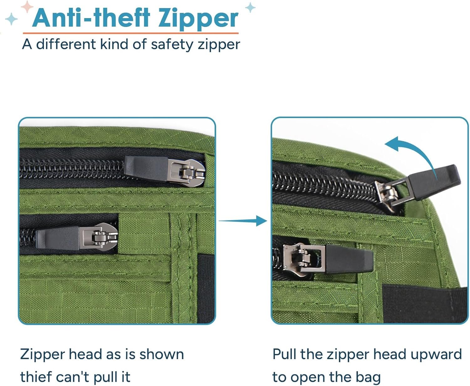 Anti-theft Safety Zipper: Featuring a Unique locked zipper closure system, the zipper head needs to be pulled upwards at a certain angle to open the zipper. The travel pouch keeps all your essentials secure and easily accessible when needed. The smooth operation of the zipper ensures seamless use while maintaining an ultra-slim profile. No more fumbling around or worrying about items falling out during your journeys