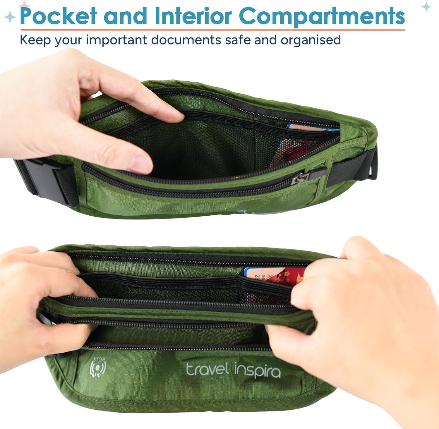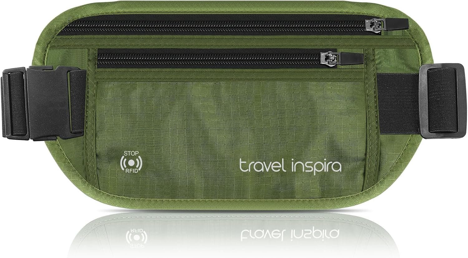 travel inspira Travel Money Belt with Slim Anti-Theft RFID Blocking Passport Holder for Travel Concealed under Clothes for Ultimate Protection of Credit Cards, Cash, Passport & Documents, Green